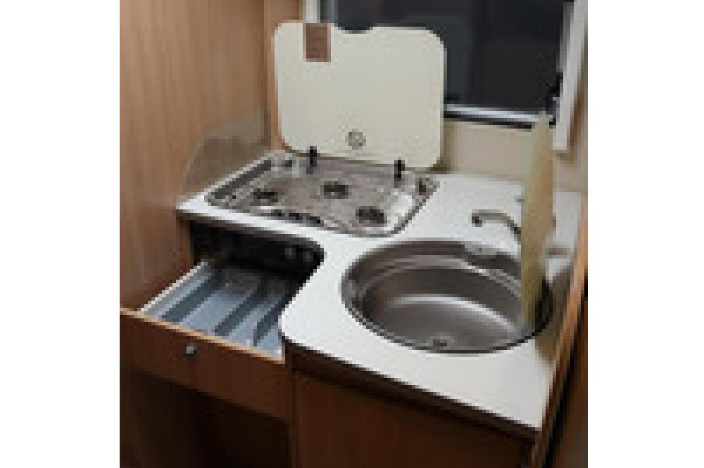 Indeling en comfortDe camper is ingedeeld voor vier personen, met een vast dwarsbed achterin en een ruim hefbed boven de zithoek. Dat betekent: altijd direct een slaapplaats zonder elke avond de boel om te bouwen. De zithoek biedt ruimte aan vier personen en is perfect voor eten, spelletjes of een kop koffie op regenachtige dagen.