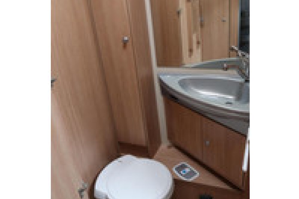 De badkamer is uitgerust met een gescheiden douche en toilet, wat echt een pluspunt is voor onderweg. Geen krappe natte cel, maar de luxe van ruimte en privacy.