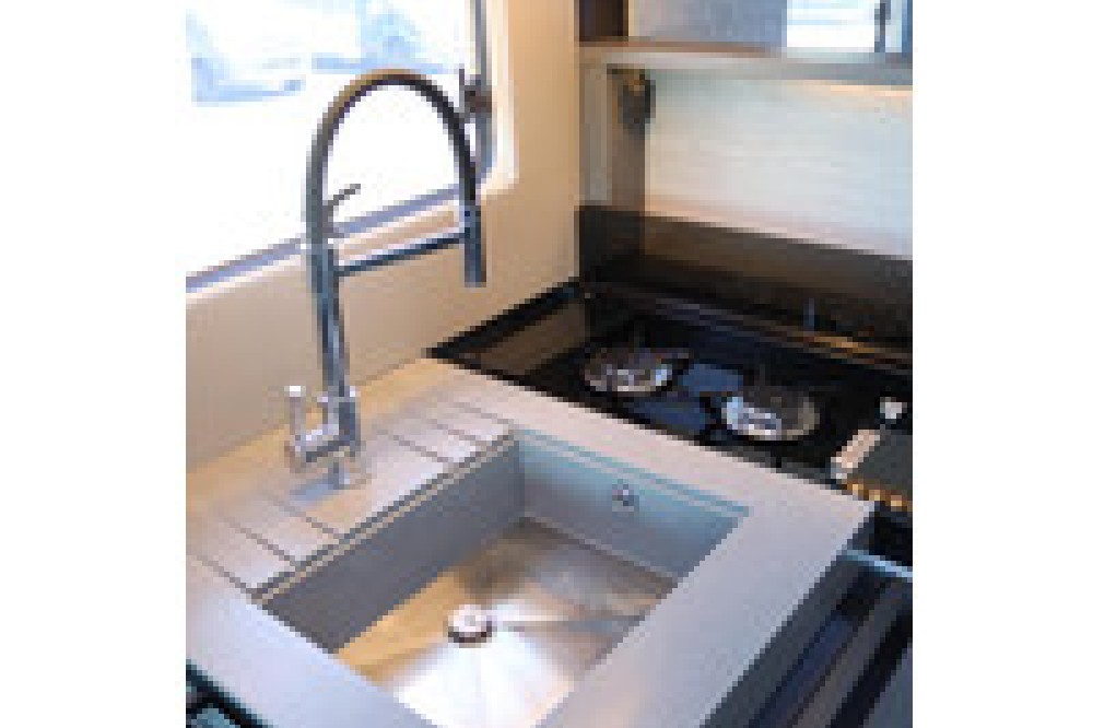 Interieur- 2-pits kookplaat met glasafdekking en RVS spoelbak