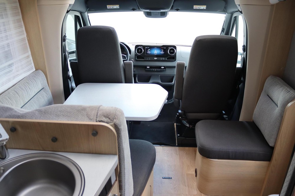 Panorama cabine met toptechnologieIn de cabine van de Hymer BMC-T 690 geniet je van een panoramisch uitzicht, zodat je niet alleen de omgeving optimaal kunt bewonderen, maar ook tijdens het rijden goed overzicht hebt op het verkeer. Het Mercedes-Benz MBUX multimedia systeem zorgt voor een soepele navigatie- en entertainmentervaring, terwijl de luxe pilotenstoelen, die volledig verstelbaar en draaibaar zijn, het comfort verhogen.