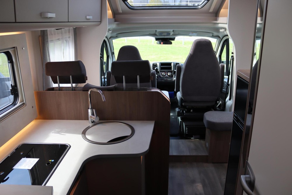 gemakkelijk te manoeuvreren en biedt tegelijkertijd genoeg ruimte voor uw comfort onderweg. De halfintegrale camper heeft veel opbergmogelijkheden in het hele voertuig.