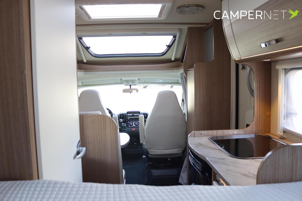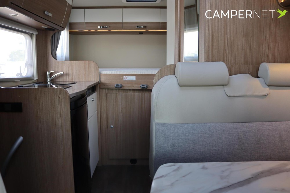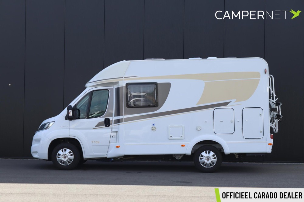 Carado T132 - Compacte half integraal onder de 6 meter.Deze complete, compacte half integraal is de perfecte indeling voor zowel korte trips als lange reizen. Met zijn 5.99 meter is hij uniek in zijn soort. Wendbaar maar toch ruim van binnen.