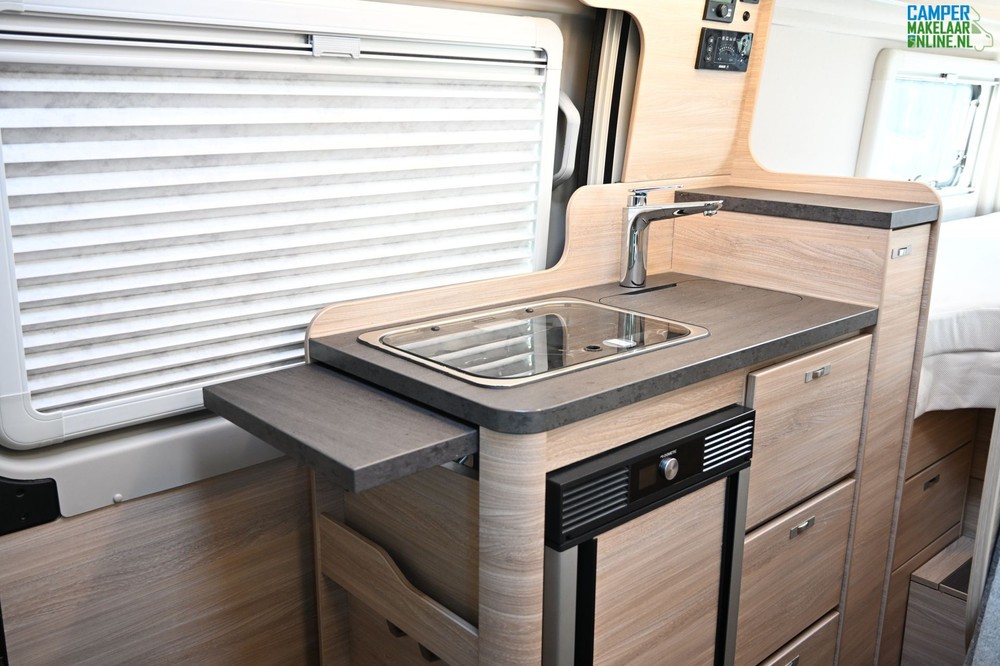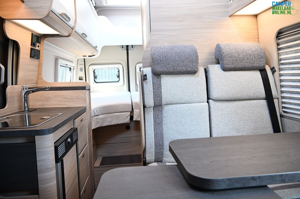 Deze Boxstar staat op een Fiat Ducato-basis met 140pk. In deze Camper kunnen twee kinderen écht comfortabel meereizen, ook als ze al wat groter zijn, zonder dat je elke avond de zitgroep moet ombouwen. Ook voor langere reizen is deze Boxstar XL erg geschikt, want dankzij de extra hoogte is er veel kastruimte boven het bed achterin.