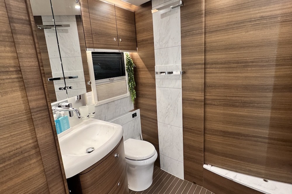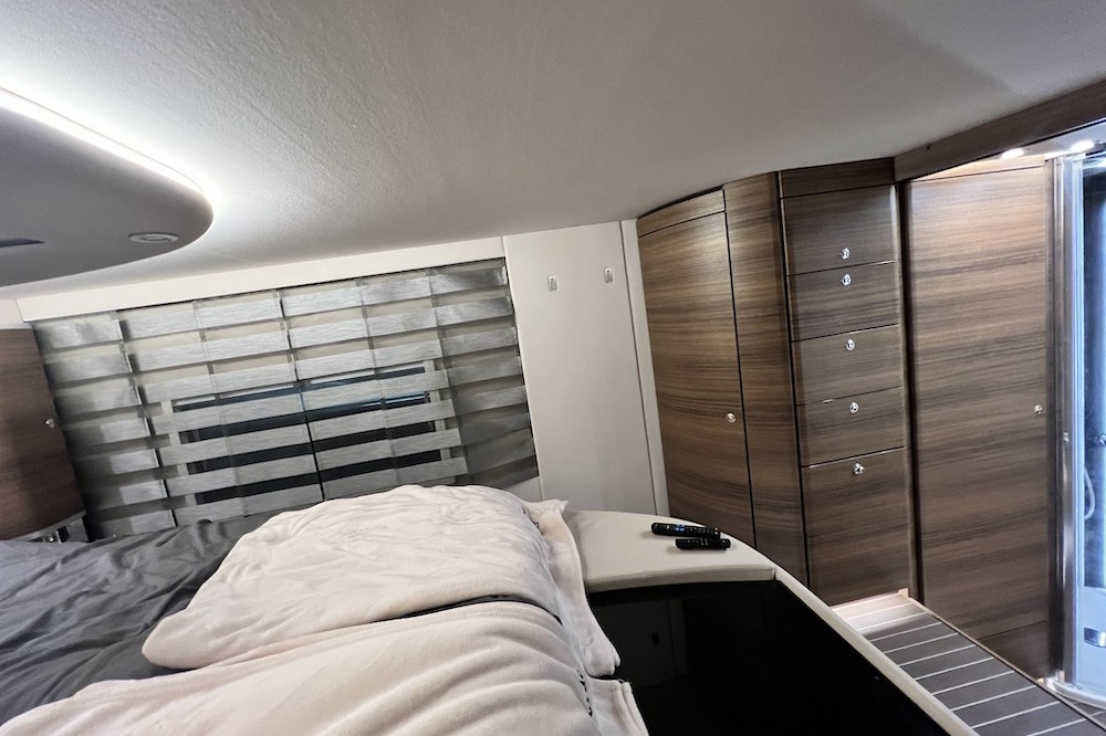 Het is werkelijk een genot om in dit reispaleis te rijden het rijd makkelijker dan je denkt mede door de 360 graden camera en scherpe draaicirkel en door de luchtvering zweeft deze dikke Concorde heerlijk relaxed over de weg!