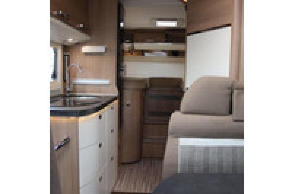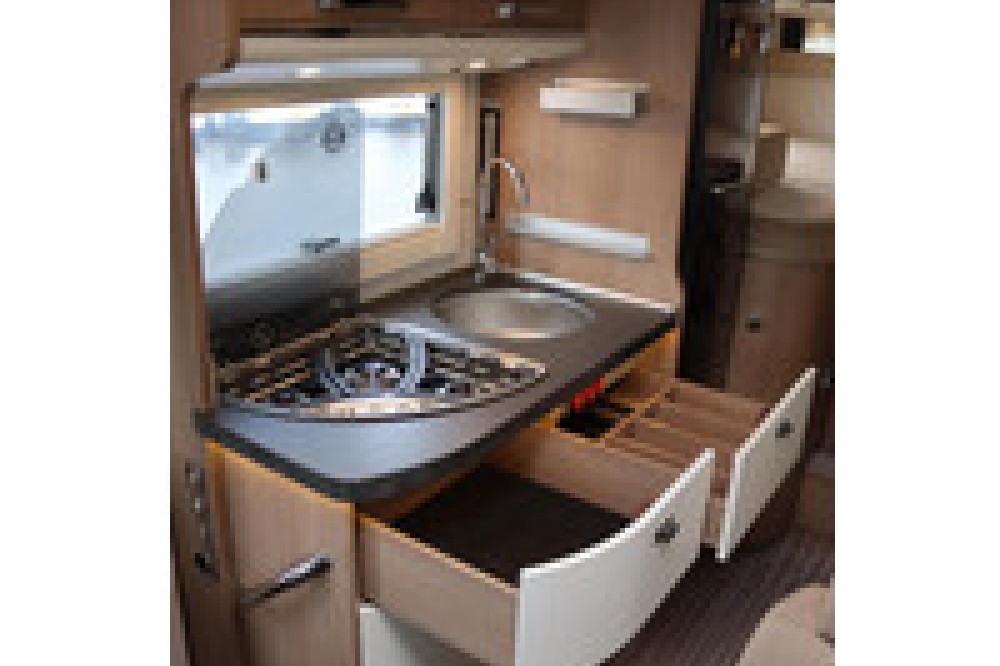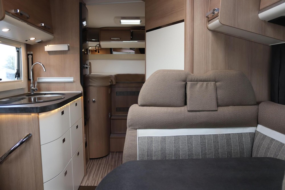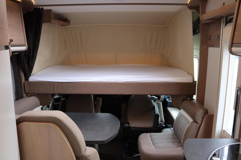 Deze luxe integraalcamper heeft de kwaliteit die u gewend bent van Carthago. De strakke langskeuken is voorzien van grote lades, drie gaspitten en slimme afzetmogelijkheden. De koelkast van 133 liter staat ernaast. In de L-vormige zithoek kunnen vier mensen relaxen. Boven de cabine hangt een tweepersoonshefbed. De dubbele bodem biedt opvallend veel opbergruimte. De I 430 staat op het Fiat Ducato Light-chassis met een motor van 150 pk. In de garage van 1,20 meter hoog past een scooter.