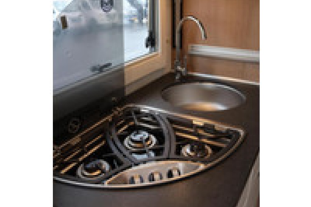 Interieur- 3-pits kookplaat met glasafdekking en RVS spoelbak