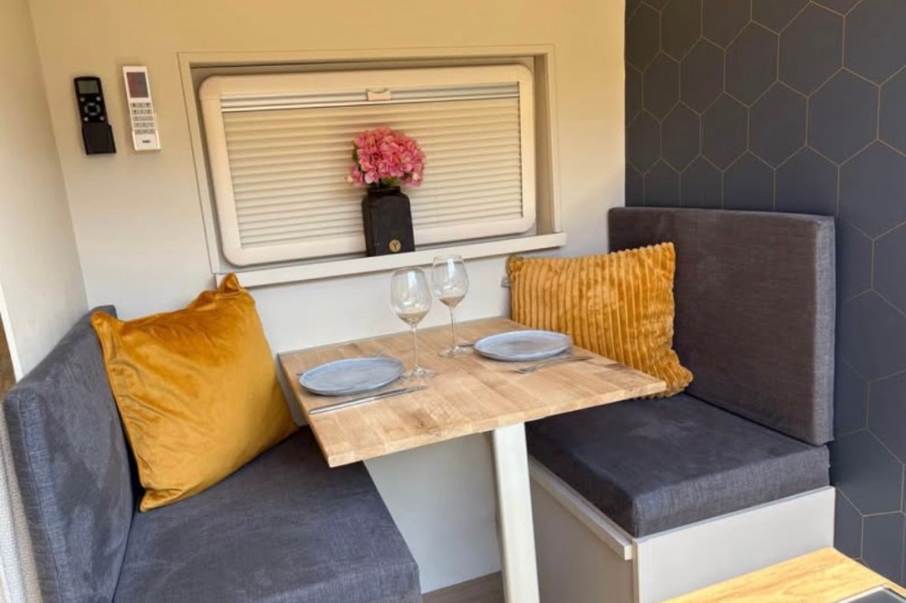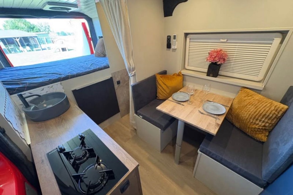 - Een logeetje of een kindje wat mee gaat kamperen? Geen probleem! Je kunt de zit in het woongedeelte ombouwen tot een klein bedje (70x138 cm).