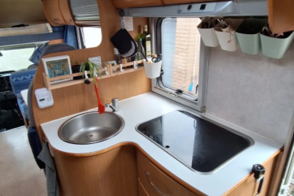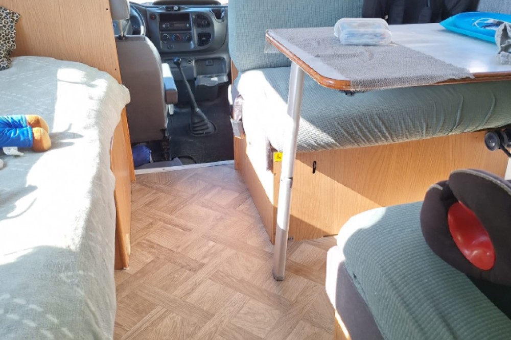 Wie wil er lekker genieten in onze gezellige familiecamper met: 6 gordelplaatsen 8 slaapplaatsen: 2 in de alkoof met uitvalnet 2 in het stapelbed met uitvalnetten 1 op de kleine dinette (nu vast bed maar kan omgebouwd naar een 2 persoonsdinette) 2 op de grote dinette Optioneel 1 kind op de voorstoelen met een op maat gemaakte lattenbodem + bijbehorend matras Toilet & douche met warm water via de boiler 3 pits kooktoestel op gas (gasfles incl) Koelkast met vriesvak Milieusticker 3 voor frankrijk In NL emissiezone 4 De camper is al wat ouder, verwacht geen blinkende gloednieuwe camper maar 1 waar je lekker met je gezin mooie tijden in kunt beleven en nieuwe plekken kunt ontdekken. Bijv de bekleding is niet overal in perfecte staat, maar dan geeft het ook niet als er spaghetti op geknoeid wordt of er een kind per ongeluk op de bekleding stift 😉 Per okt 2024 zitten er hoezen om de grote zit en ligt er een nieuwe vloer en is het badhokje vernieuwd. Niet alle foto's tonen hoe hij nu precies is.