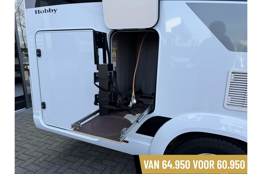 Hobby V65 GE Optima Ontour Enkele Bedden Fietsenrek Luifel Schotel
