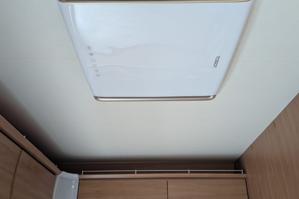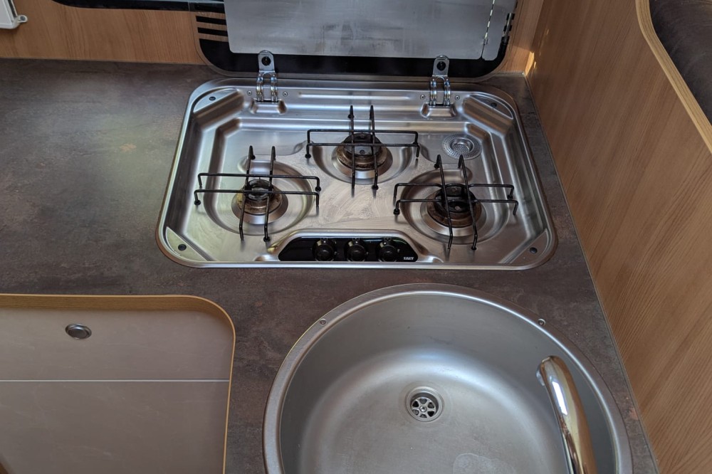 Zelfvoorzienend, kun je er dagen mee off grid staan. Het zonnepaneel zorgt voor de elektriciteit en de koelkast, vriezer, het fornuis en de boiler werken op gas.