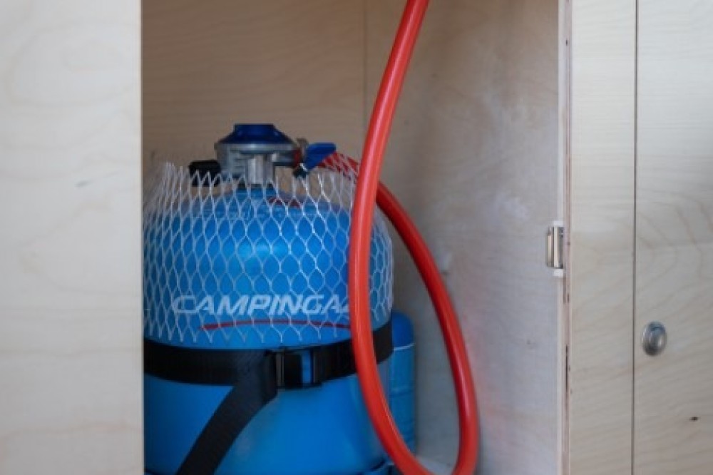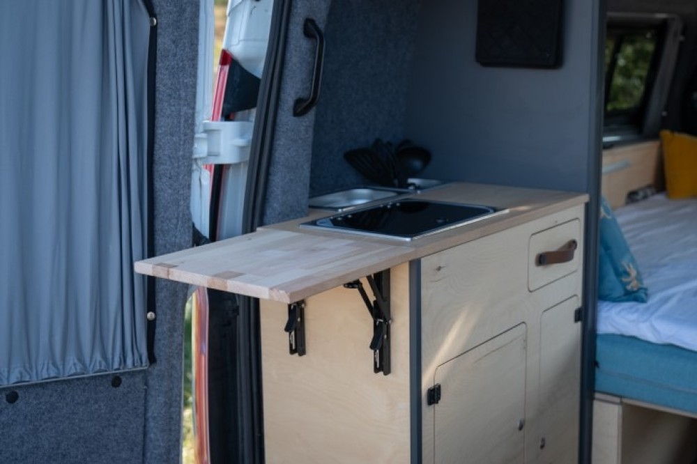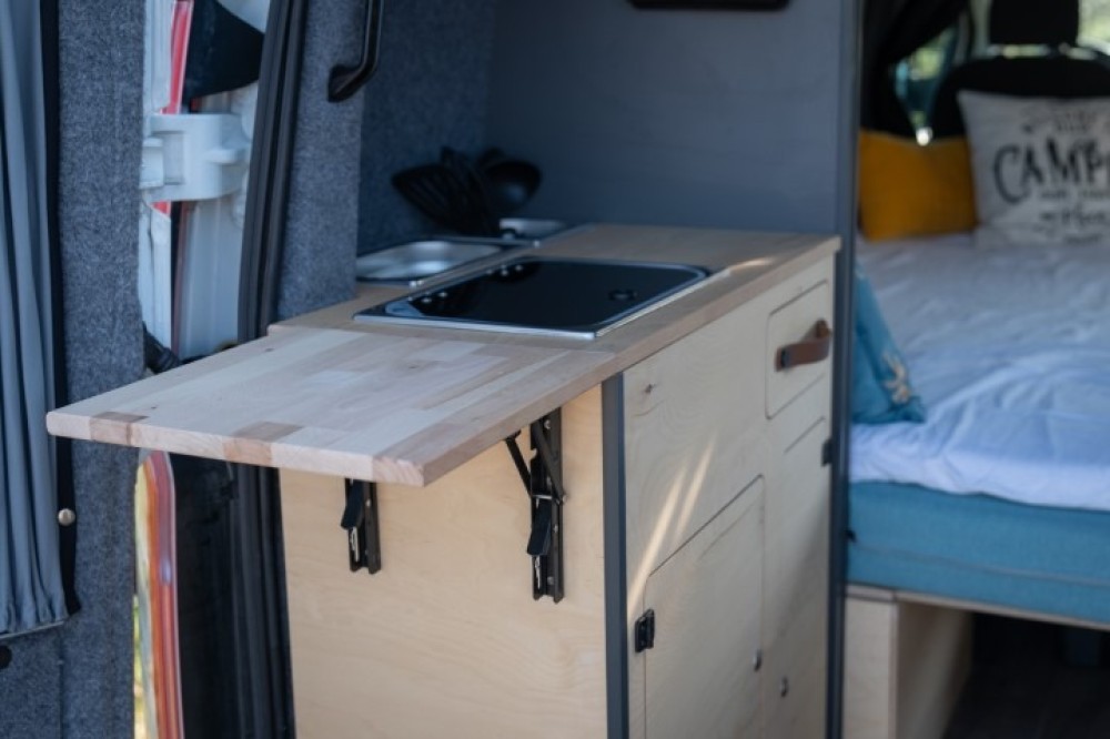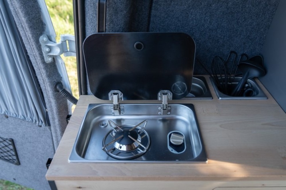 De camper is voorzien van een één pits gascomfort in het (linker) keukenblok. Het (rechter) keukenblok is voorzien van een wasbak met koudwaterkraan. De waterdruk wordt geregeld door een drukpomp met een expansievat. Dit resulteert in een krachtige waterstraal. Het is mogelijk om hier een douchekraan op aan te sluiten.