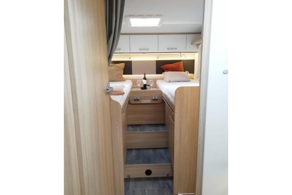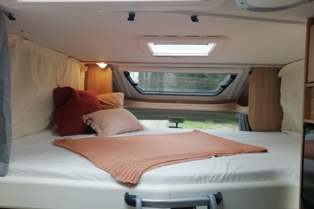 Een handige ruimtewinner is het tweepersoons hefbed, dat zich boven de zitgroep bevindt. Dit hefbed heeft een lengte van 200 cm en is 140 cm breed. Achter de camper bevinden zich de 2 aparte bedden, die borg staan voor extra ruimte en een makkelijke instap. Deze enkele bedden hebben een lengte van 203 en 212 cm. En deze bedden zijn beide 83 cm breed. Deze enkele bedden kunnen ook nog als één groot bed omgebouwd worden. Dan heeft het bed een lengte van 200 cm en 200 cm breed.