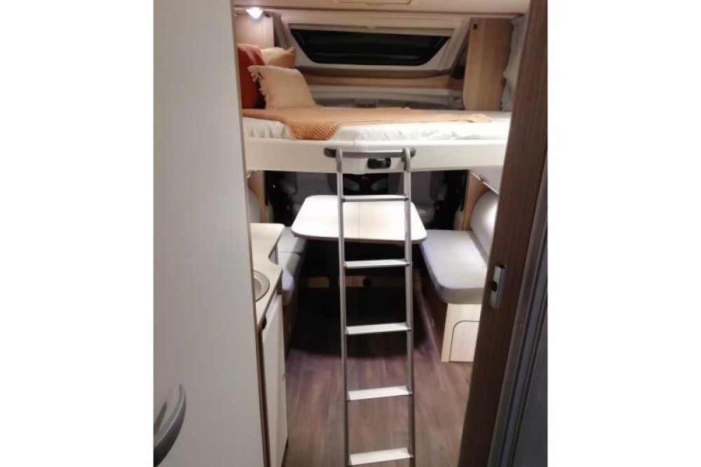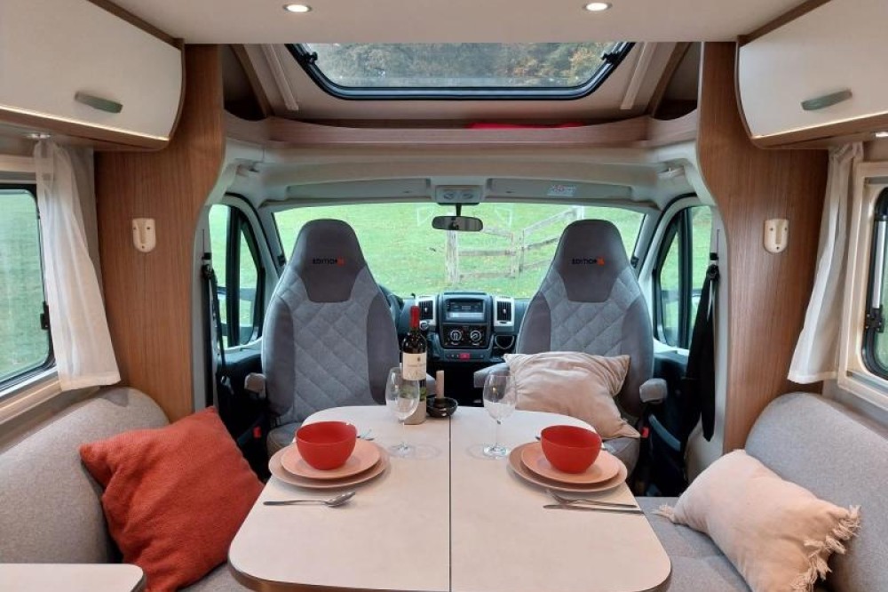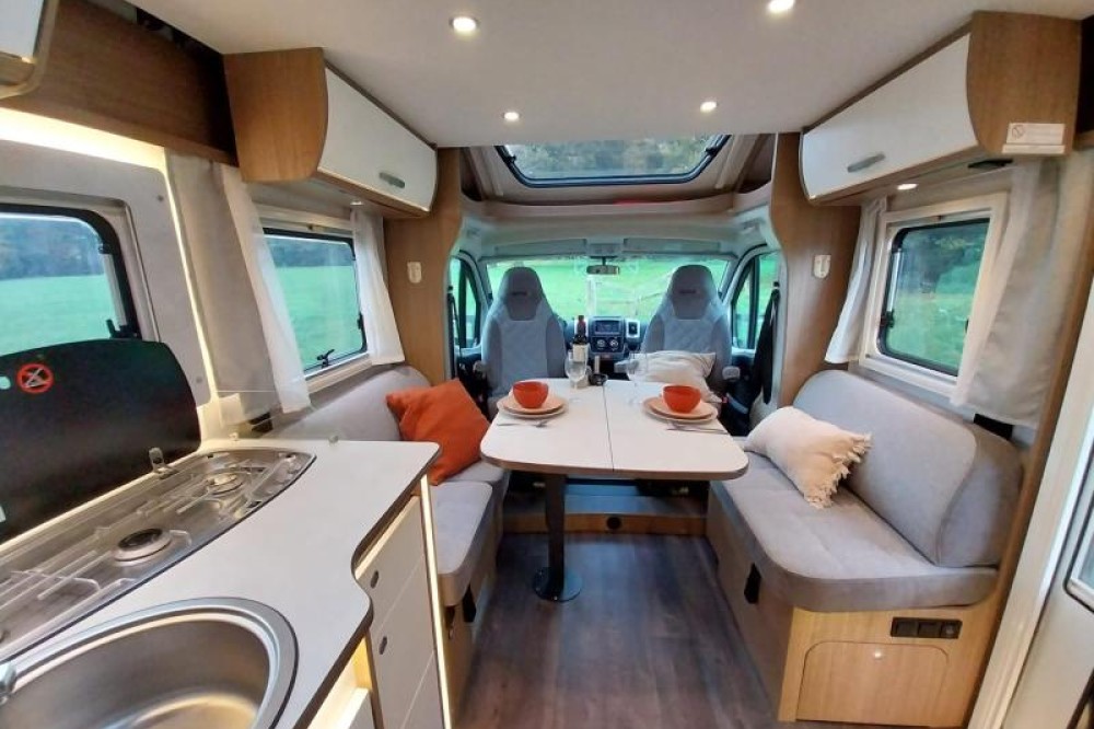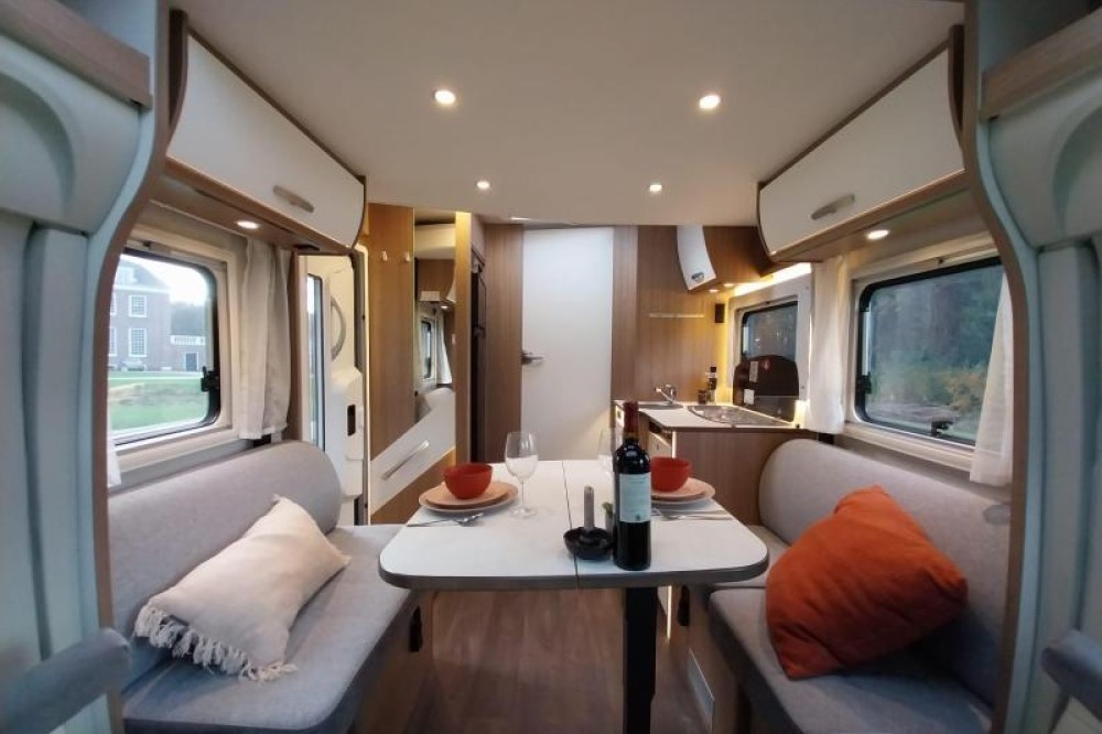 De camper is uitgerust met draaibare stoelen, cruise control, een achteruitrijcamera, een navigatiesysteem, centrale deurvergrendeling met afstandsbediening en cabineverduistering. De aandrijving komt voor rekening van een duurzame en pittige 140 pk Fiat dieselmotor met een handmatige versnelling.