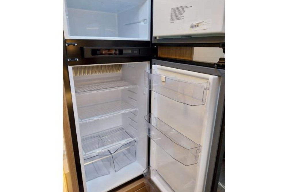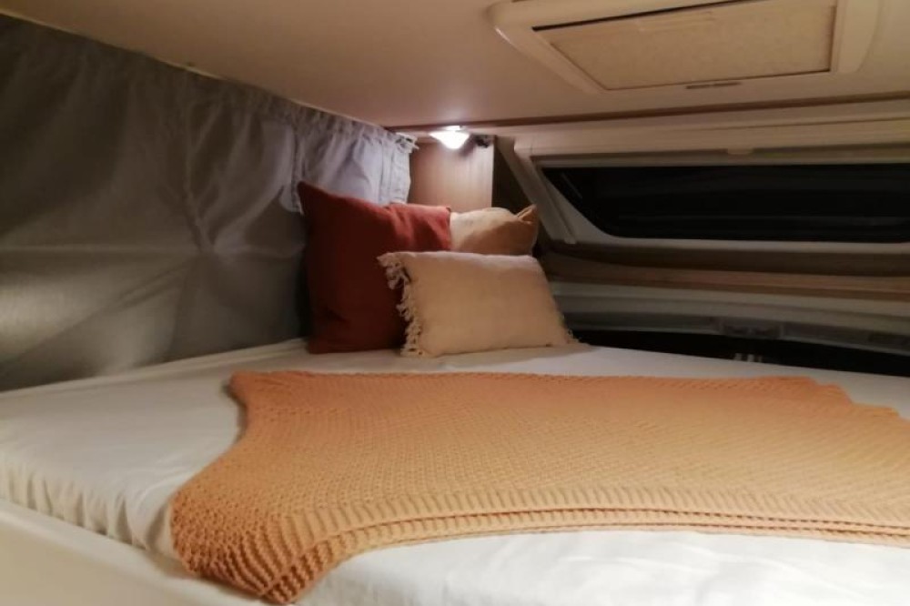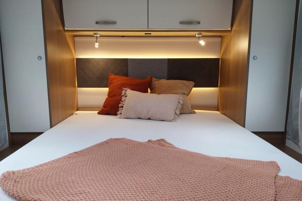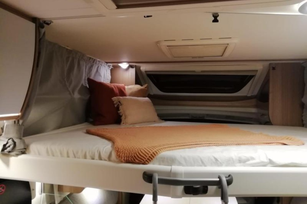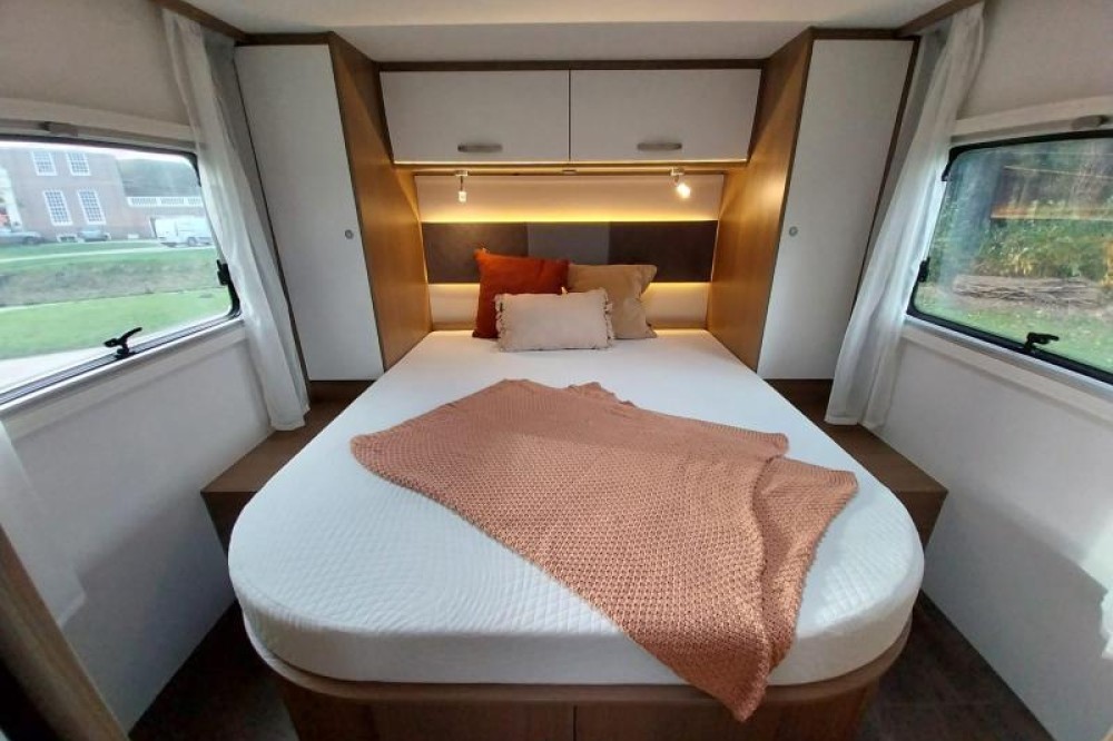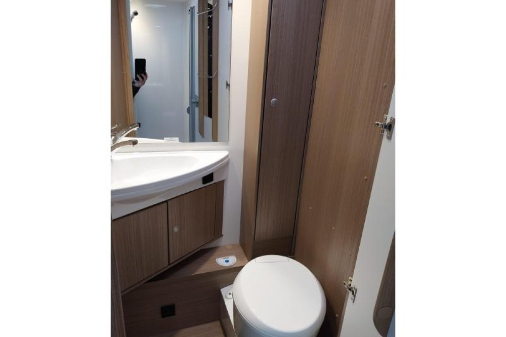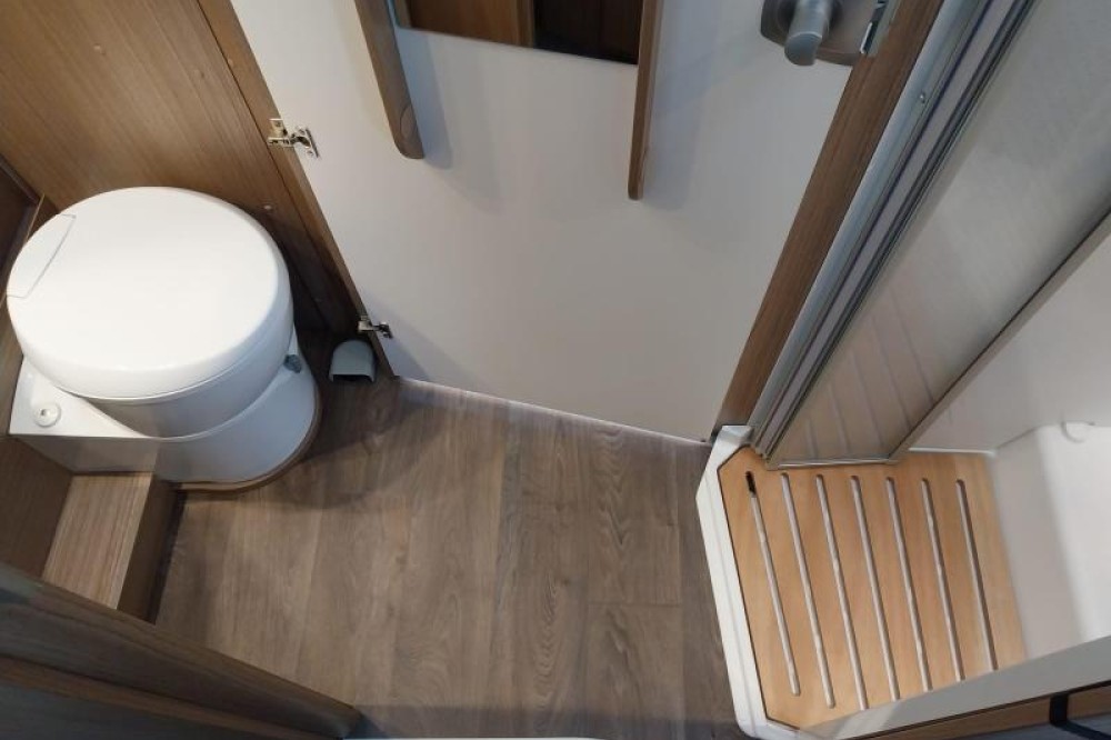 U zult de gemakkelijk instap van dit vrijstaande queensbed zeker waarderen. Dit bed heeft een lengte van 195 cm en is 140 cm breed. U bespaart enorm veel ruimte dankzij het hefbed, waarin 2 personen een slaapplaats vinden. Dit bed heeft een lengte van 200 cm en is 140 cm breed. De badkamer biedt gelegenheid om u aan de wastafel op te frissen en er is tevens een cassettetoilet. Naast het slaapgedeelte bevindt zich ook de douchegelegenheid.