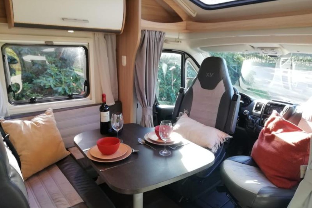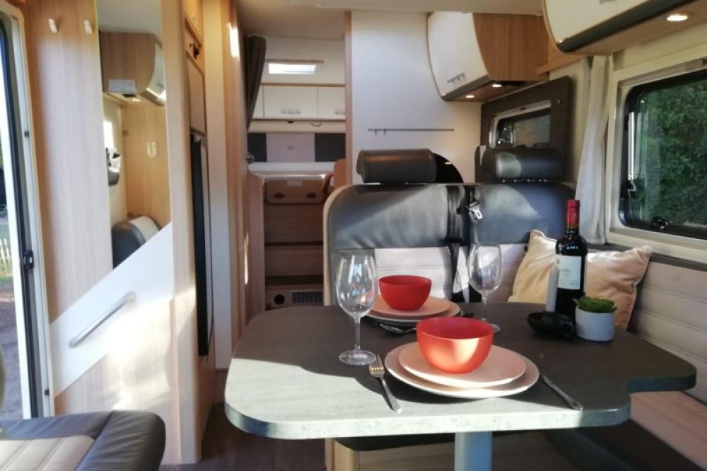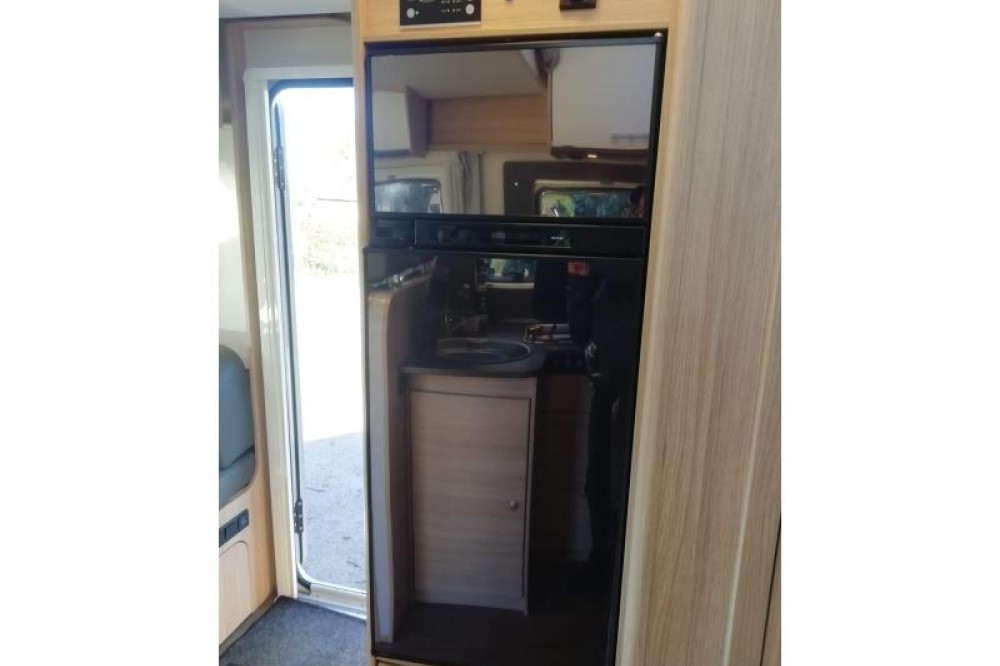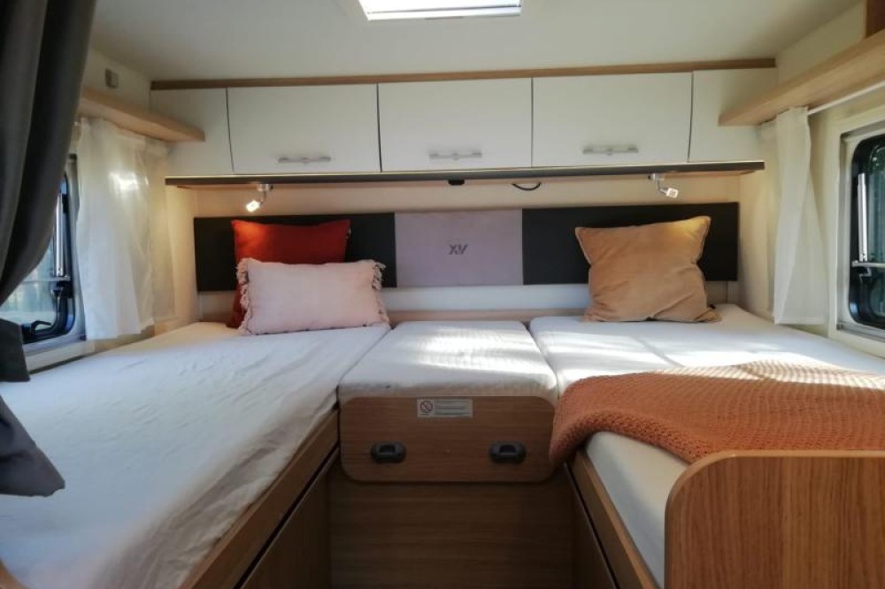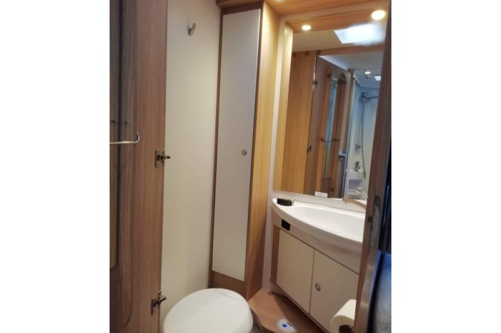 De gezellige en handige rondzit waar de camper over beschikt, kan ook dienen als extra slaapgelegenheid. De keuken is in het midden van de camper gemonteerd en beschikt onder meer over een 3-pits kooktoestel en gootsteen met kraan. De praktische kastjes bieden een zee aan ruimte voor uw voorraad. Voor een snelle toevoer van warm water is er een boiler aanwezig. De inbouwkoelkast met vriescompartiment heeft een grote XXL inhoud.
