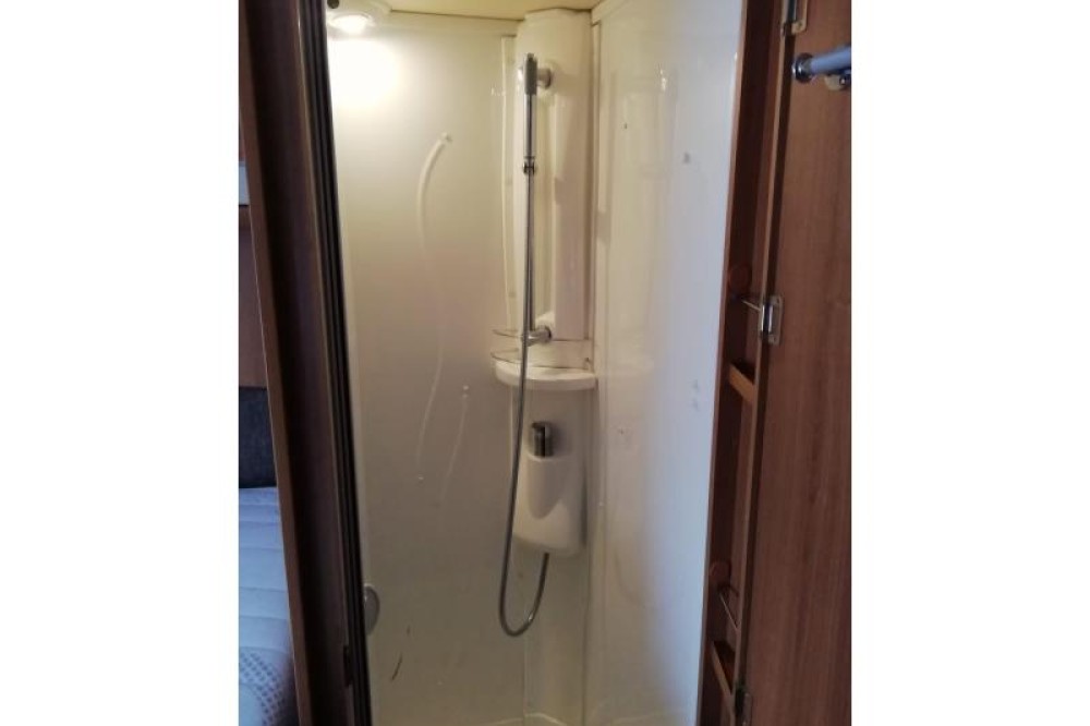 Het vrijstaande 2 persoons queensbed biedt u alle ruimte en is tevens goed toegankelijk voor het in-en uitstappen. Dit bed heeft een lengte van 195 cm en is 135 cm breed. U kunt in deze camper genieten van een uitstekende nachtrust dankzij de lattenbodems en de traagschuimmatrassen op de bedden. De badkamer biedt wasgelegenheid in de vorm van een wastafel. Tevens is er een ingebouwde cassettetoilet aanwezig. Ook is de camper uitgerust met een douchegelegenheid, zodat u zich ook onderweg heerlijk kunt opfrissen. Naast deze ruime badkamer brschikt deze camper over een aparte wc Hierdoor zijn de badkamer en de wc van elkaar geschieden ideaal!