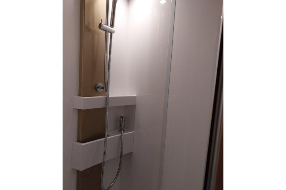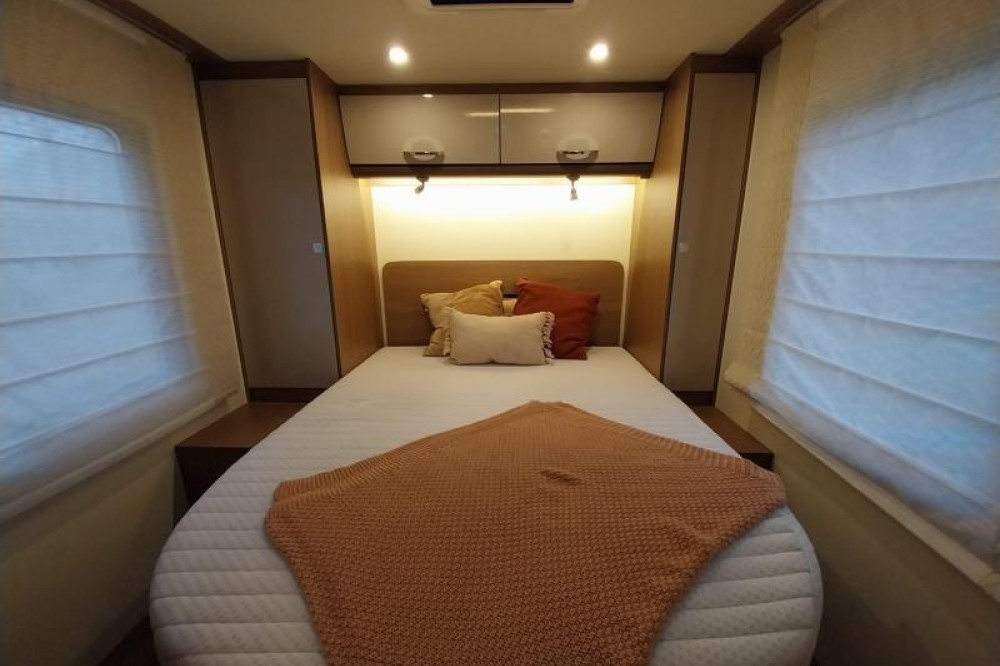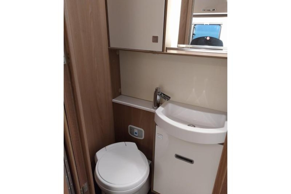 Het handige ruimtebesparende hefbed is geschikt voor 2 personen; het bevindt zich boven de zitgroep. Dit bed heeft de lengte van 200 cm en is 150 cm breed. Achterin de camper bevind zich het ruimte twee persoons lage queensbed. Dit bed heeft een lengte van 200 cm en is 150 cm breed. In de badkamer, waar deze camper over beschikt, vindt u een ingebouwd cassettetoilet en een wastafel. Ook is de camper uitgerust met een douchegelegenheid, zodat u zich ook onderweg heerlijk kunt opfrissen.