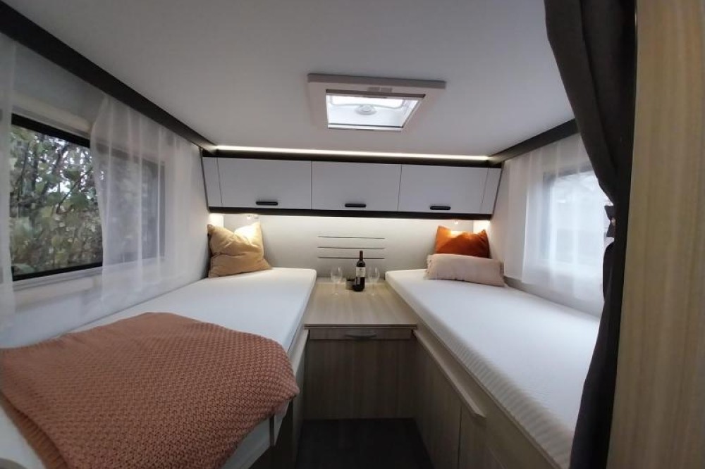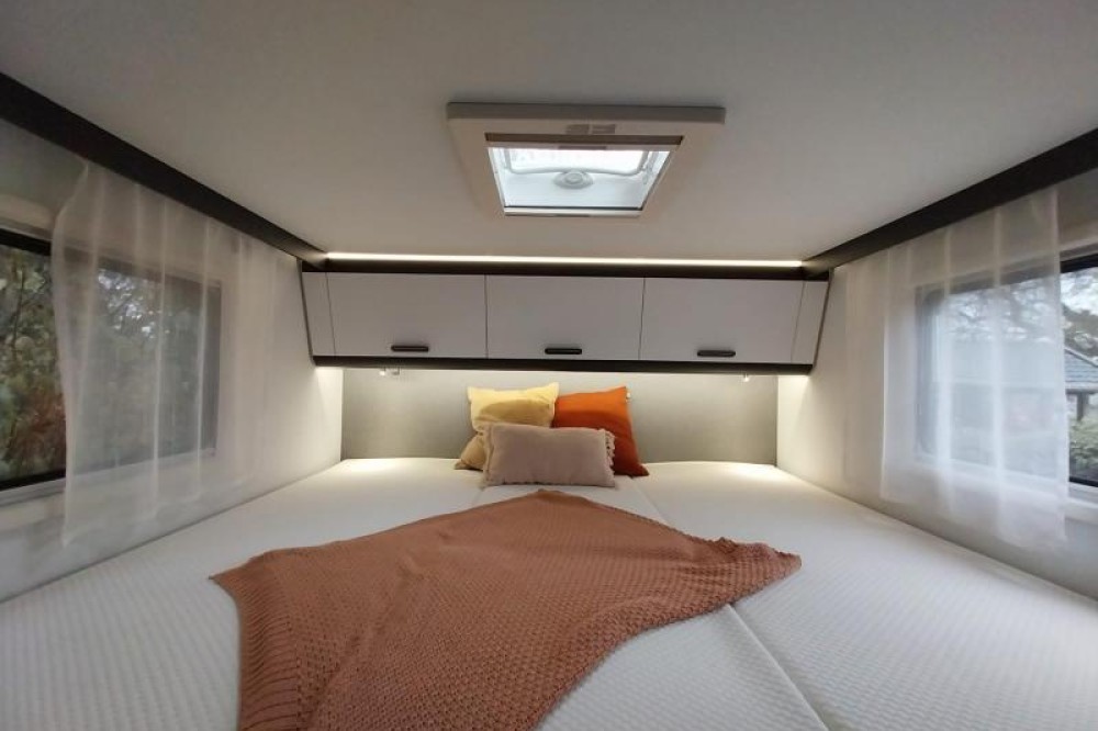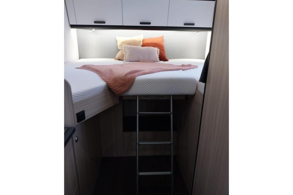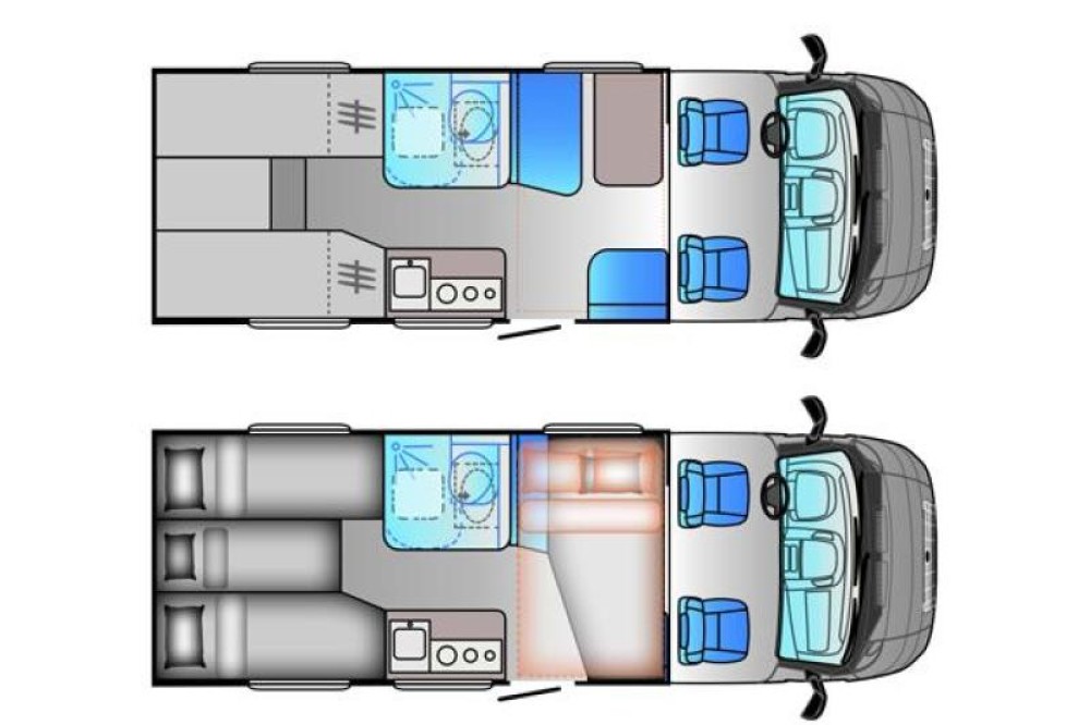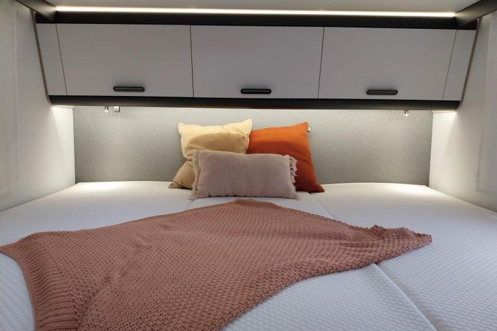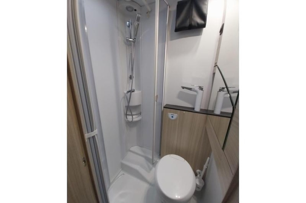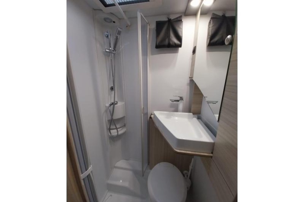 U bespaart enorm veel ruimte dankzij het hefbed, waarin 2 personen een slaapplaats vinden. Dit hefbed heeft een lengte van 185 cm em os 123 cm breed. De twee aparte bedden waarover de camper beschikt, bieden een gemakkelijke instap. Deze beddem heben een lengte van 209 / 206 cm en zijn beide 77 cm breed. Deze bedden kunnen zelfs als één groot bed gebruikt worden. Dan heeft dit een lengte van 209 cm en is 200 cm breed. In de badkamer kunt u zich heerlijk opfrissen bij de wastafel. Verder is er ook een cassettetoilet ingebouwd. Naast het slaapgedeelte bevindt zich ook de douchegelegenheid.