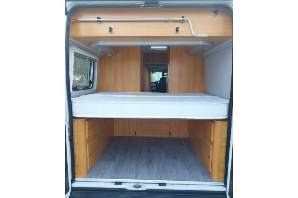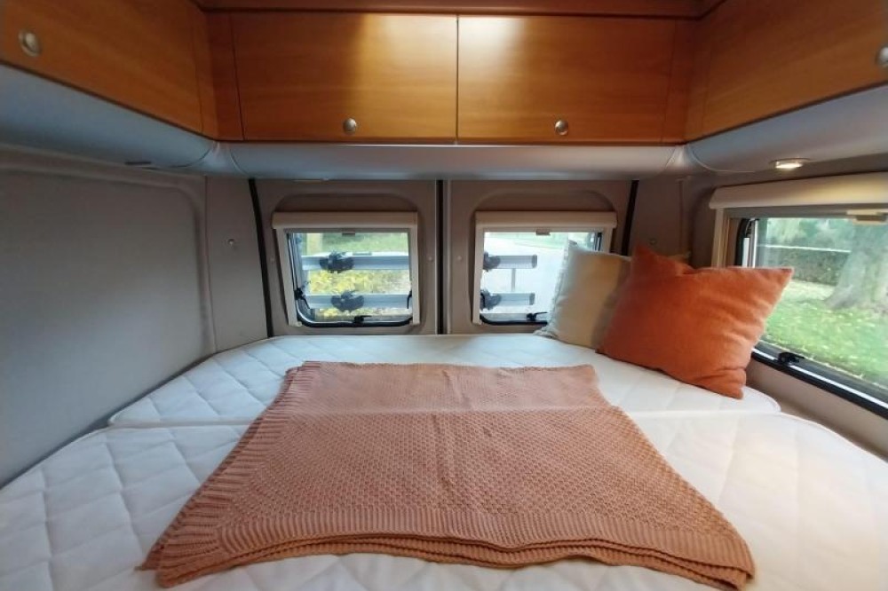 Aan slaapcomfort zal het u in deze camper, die is voorzien van lattenbodems en traagschuimmatrassen, zeker niet ontbreken. In de de badkamer vindt u niet alleen een wastafel maar ook een ingebouwd cassettetoilet. Naast het slaapgedeelte bevindt zich ook de douchegelegenheid.