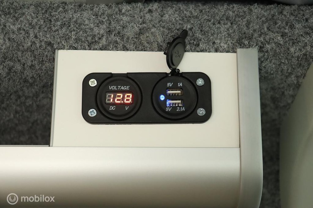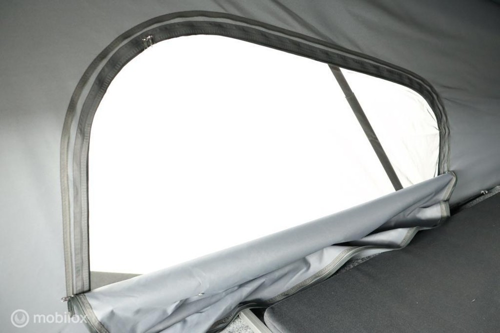 Verder is de buscamper voorzien van een slaaphefdak met een bedmaat van 120 x 200 cm, heeft hij rondom glastinting en een rail waarin zonnedoek kan worden gemonteerd om je te beschermen tegen de felle zomerzon.