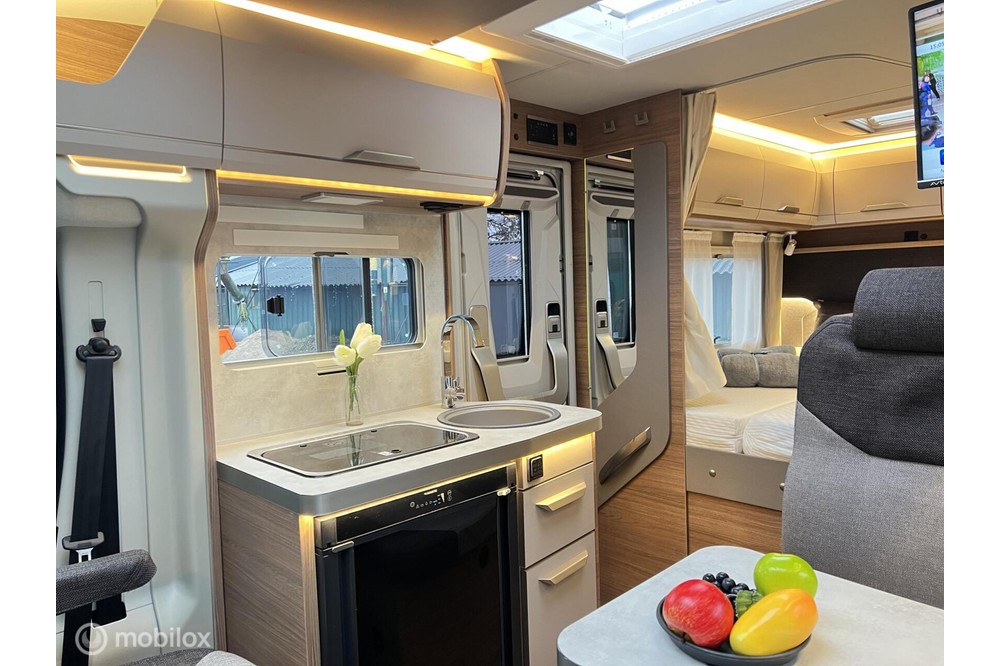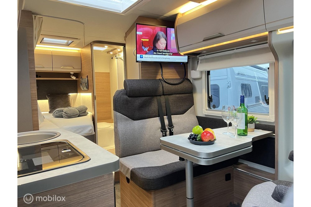Automatische satellietschotel Oyster 60 Premium met Avtex Oyster 27 inch TV- Sfeervolle verlichting met LED spots door de gehele camper