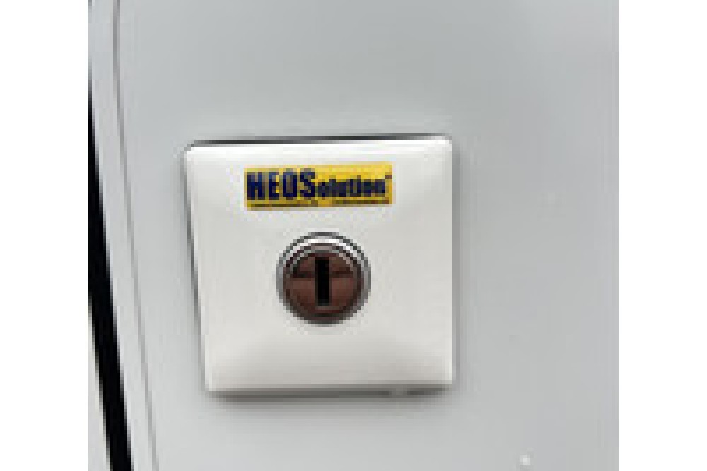 - Op cabinedeuren en garagedeur Heo-Safe sloten