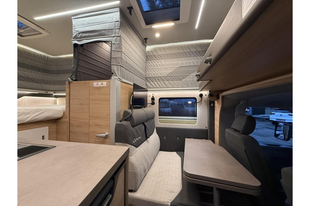 Het elektrische "Pop-up" dak maakt deze camper ontzettend dynamisch qua rijgedrag en waant u zich in een personenauto. Eenmaal op de plaats van bestemming heeft u met het pop-up dak omhoog een stahoogte van maar liefst 2m17!