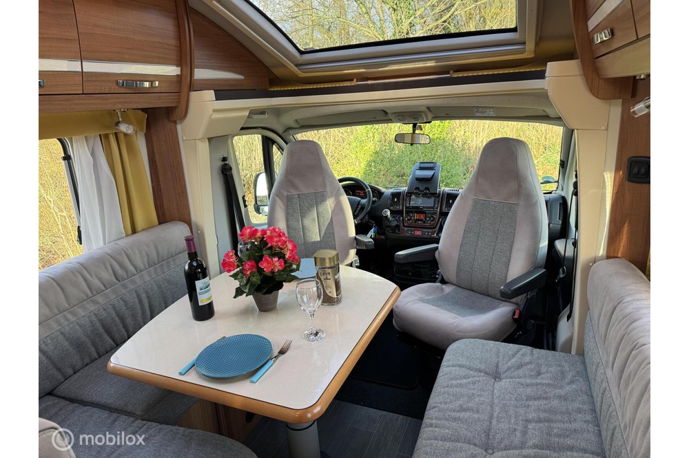 Algemene kenmerken:- Type: Halfintegraal camper, wat betekent dat de cabine gedeeltelijk is geïntegreerd in het woongedeelte. Dit zorgt voor een betere stroomlijn en meer leefruimte.