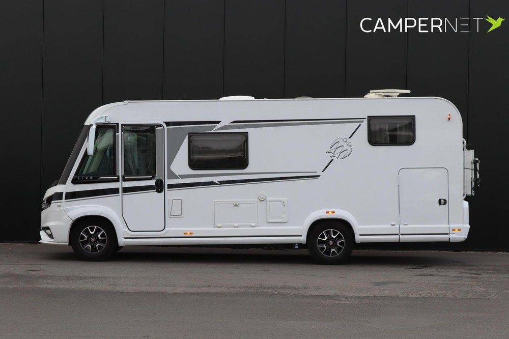 Knaus Live I 650 MEG R12 Deze Knaus Live I 650 MEG R12 is een bijzonder nette integraalcamper, met een moderne en warme uitstraling. Binnen zorgt de indirecte verlichting voor een gezellige sfeer en buiten valt de camper op door de strakke striping en de lichtmetalen velgen. De extra brede toegangsdeur maakt instappen extra comfortabel.