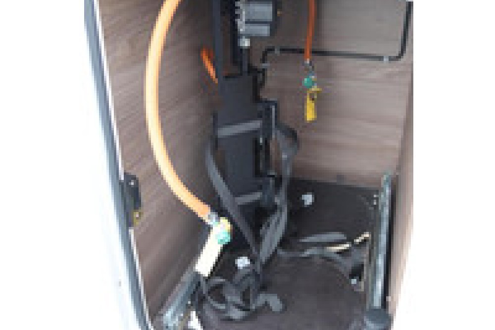 - Ruimte voor gasflessen met deur en uittrekbare slede