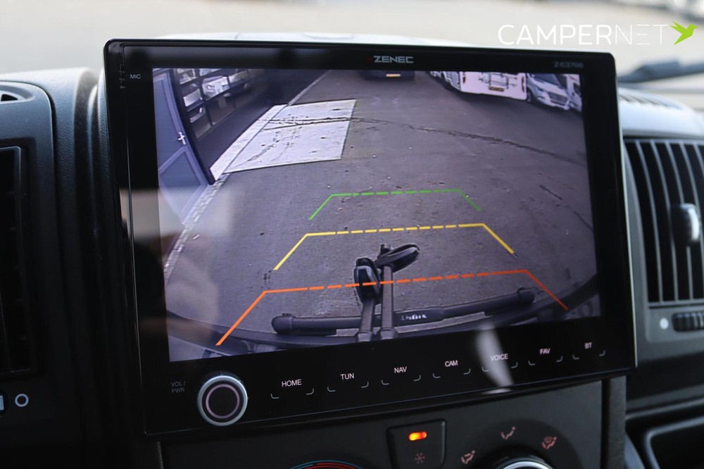 De moderne LMC Tourer T 730 G met lengte bedden met o.a. skyroof, cruise control, dubbele airbag, Thule luifel, Thule fietsendrager plissé hordeur, hagelbestendig GFK dak en zijwanden , Zenec Multimediasysteem.