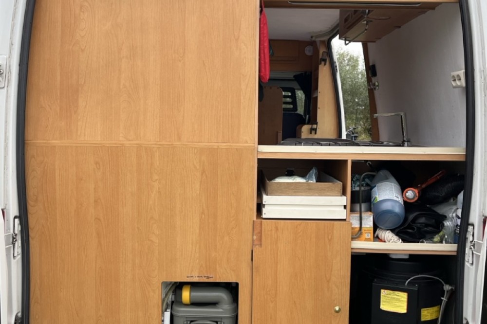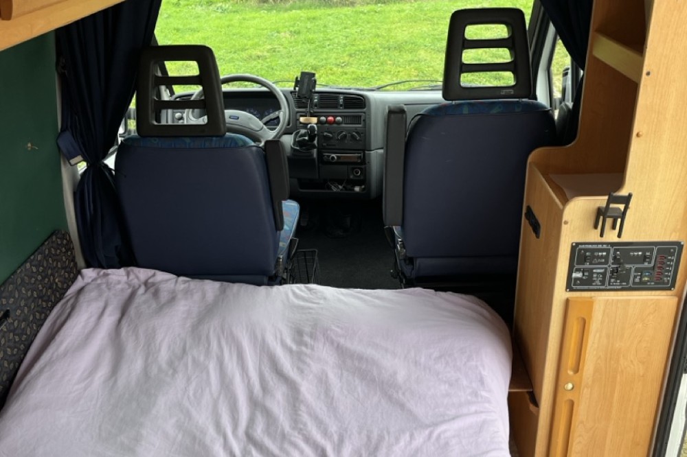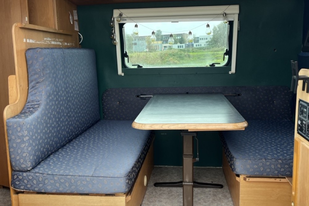 Het is een ruime en praktische buscamper met toilet, zit-/slaapgedeelte, veel kastruimte, een volwaardig zonnepaneel (355Wp!), 2x 125kWh (start- en huishoud) accu, 12-230V omvormer (stopcontact voor offgrid), inbouw laptop/tablet/smartphone lader op 12Volt, en een koelkast die op gas óf elektriciteit werkt. Compact en ideaal om offgrid te staan. De verwarming doet het niet, en de versnelling werkt goed maar de versnellingspook plakt een beetje vanaf 5e naar 4e versnelling (versnellingskabel moet worden vervangen).