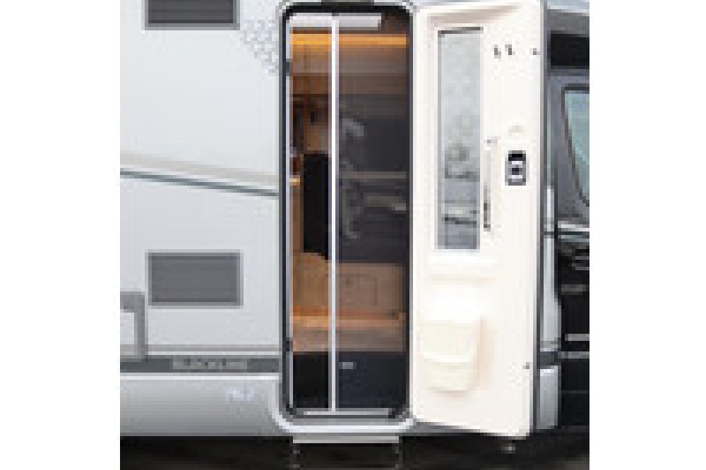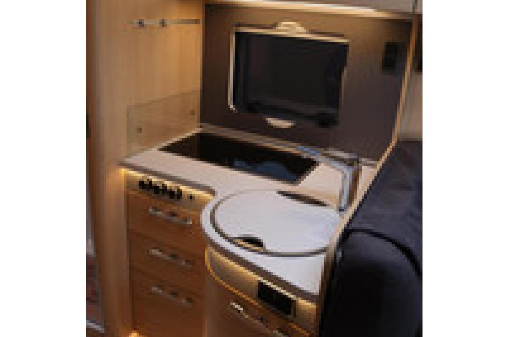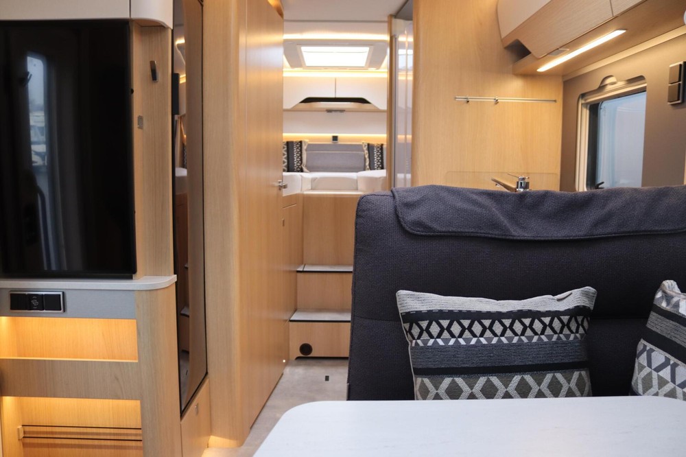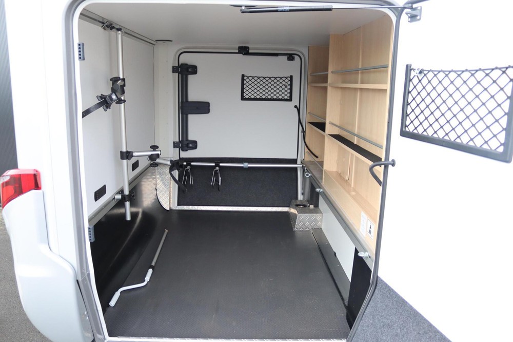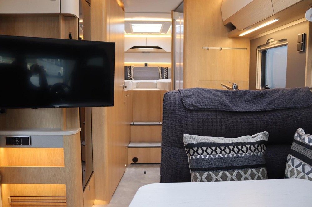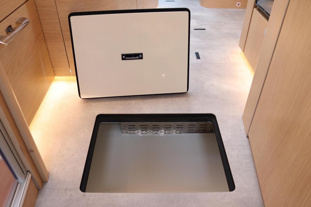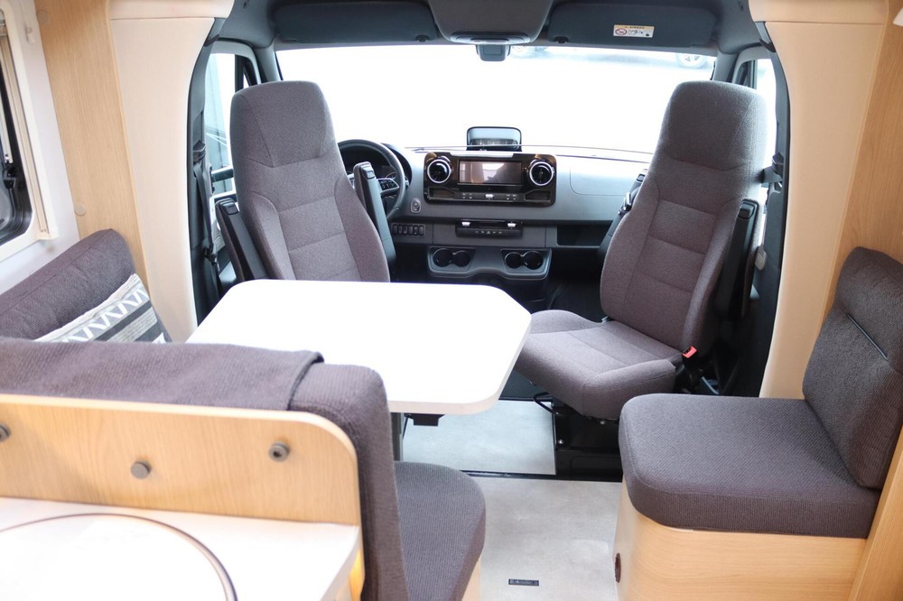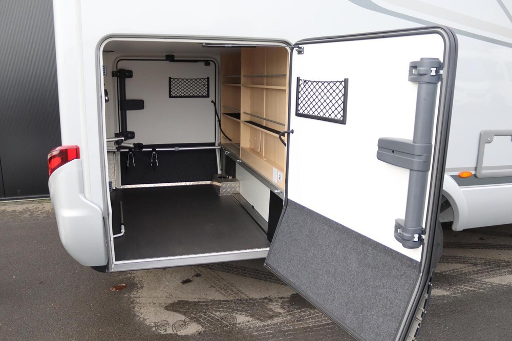 Luxe en praktische detailsDe Hymer BMC-T 680 biedt een ruime zithoek met een L-zit die ontstaat door de luxe draaibare voorstoelen. Het elegante Grand Oak meubeldecor in combinatie met de luxe Bogota bekleding zorgt voor een verfijnde uitstraling. Dankzij de dubbele bodem, die verwarmd is en extra opbergruimte biedt, kun je jouw spullen veilig en droog opbergen. De 180 liter schoonwatertank en de 150 liter vuilwatertank zijn weggewerkt in de dubbele bodem, terwijl je vanuit de buitenkant eenvoudig toegang hebt tot de opslagruimte. De ruime garage heeft een laadhoogte van 132 cm, is aan beide zijden toegankelijk en biedt voldoende ruimte voor uw fietsen, scooter en bagage.