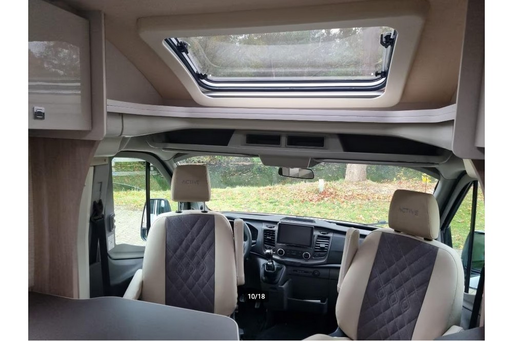 De camper is uitgerust met draaibare stoelen, cruise control, navigatie en een achteruitrijcamera. Uiteraard centrale deurvergrendeling met afstandsbediening, cabineverduistering en elektrisch bedienbare spiegels. De aandrijving komt voor rekening van een duurzame dieselmotor met een handmatige versnelling.