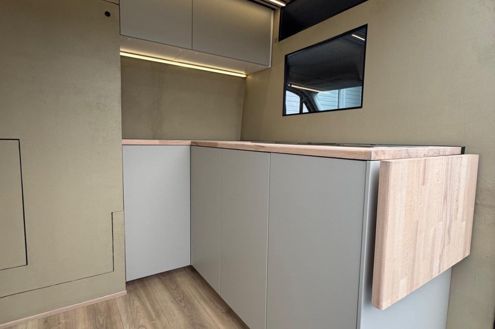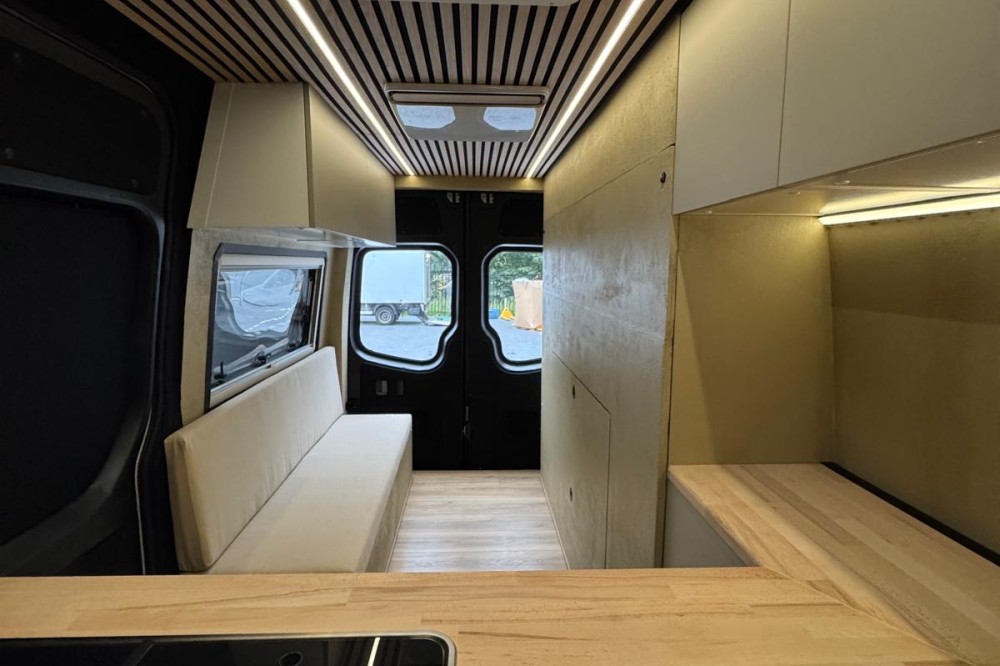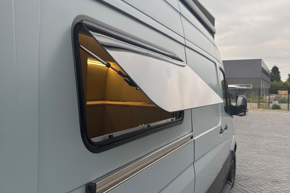 Deze Mercedes Sprinter camper is geen standaard buscamper. Dankzij de slimme Murphy bed-oplossing geniet je overdag van een royale leefruimte, ideaal om te koken, te ontspannen of te werken. ’s Nachts beschik je over een volwaardig en comfortabel bed. De combinatie van extra vermogen (door chiptuning), automatische transmissie en praktische indeling maakt deze camperbus zeer geschikt voor lange reizen, stedentrips en avontuurlijke vakanties.
