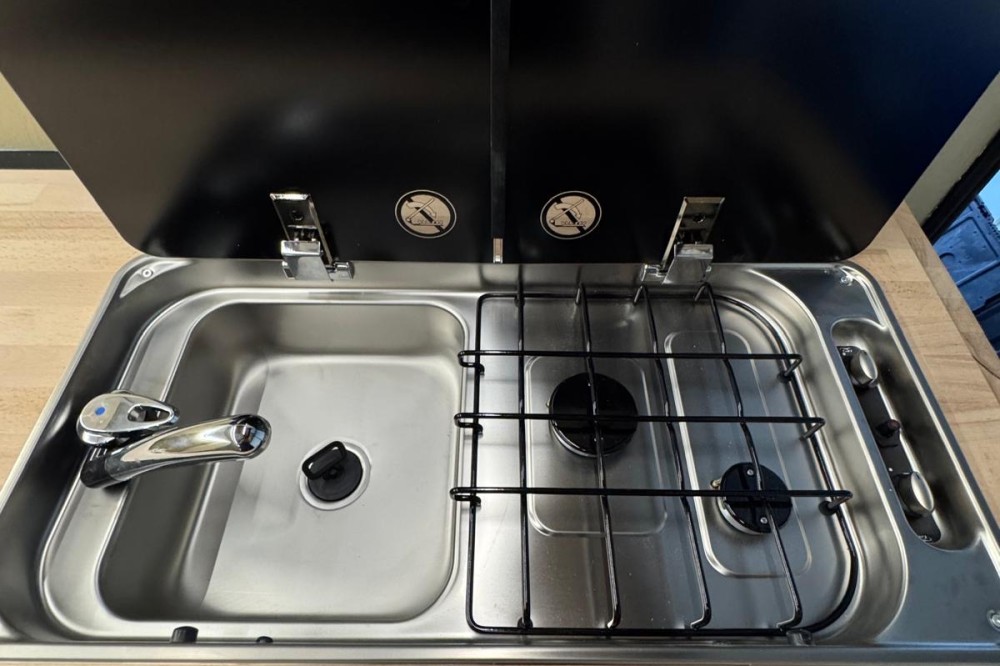 12V aansluitingen leefruimte, Airco leefruimte, Apart vriesvak, Dakventilator, Dimmer, Gascomfort, Koelkast, Koelkast met vriesvak, Lattenbodem, Matras traagschuim, Tweezitsbank lengterichting, Tweezitsbank met gordels, Uitschuifbaar werkblad, USB laadpunten leefruimte, Verduistering cabine, Verstelbare hoofdeinden, Wegklapbare tafel,