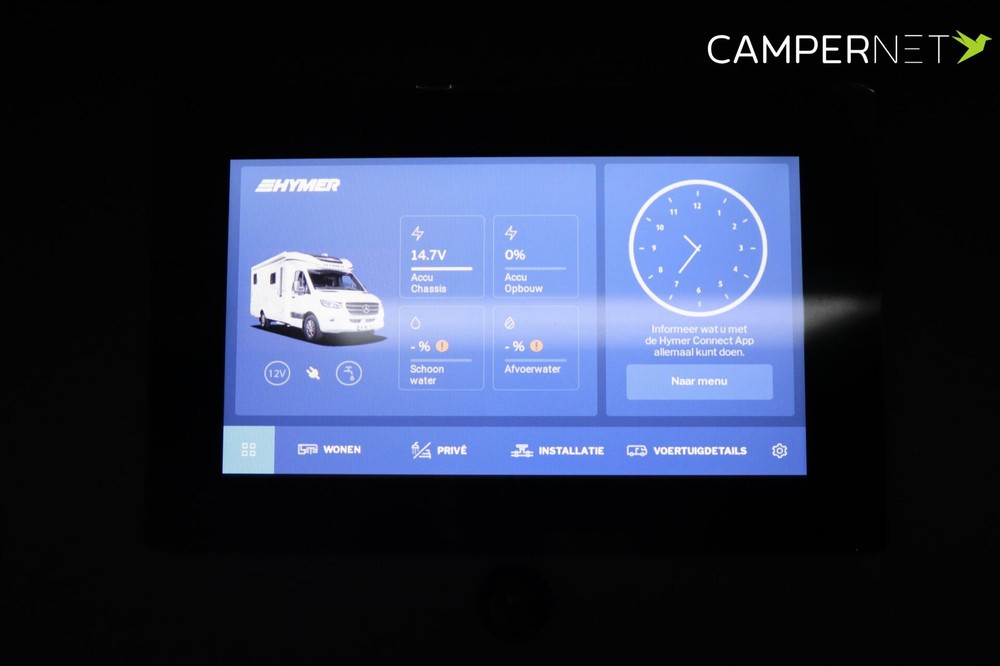 Controleer de reis.HYMER Connect: Uw digitale sleutel tot superieur reiscomfort. Regel verwarming, verlichting en koelkasttemperatuur via je smartphone. Controleer brandstofpeil en kilometerstand. Definieer individuele comfortscenario's en activeer je feel-good ambiance op elk moment met een druk op je vinger.