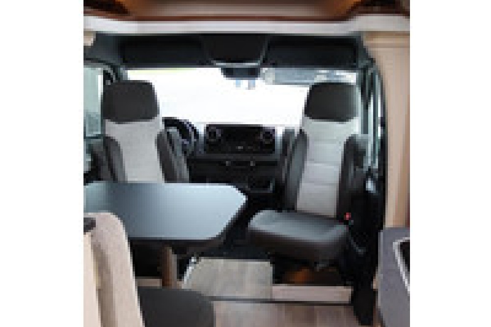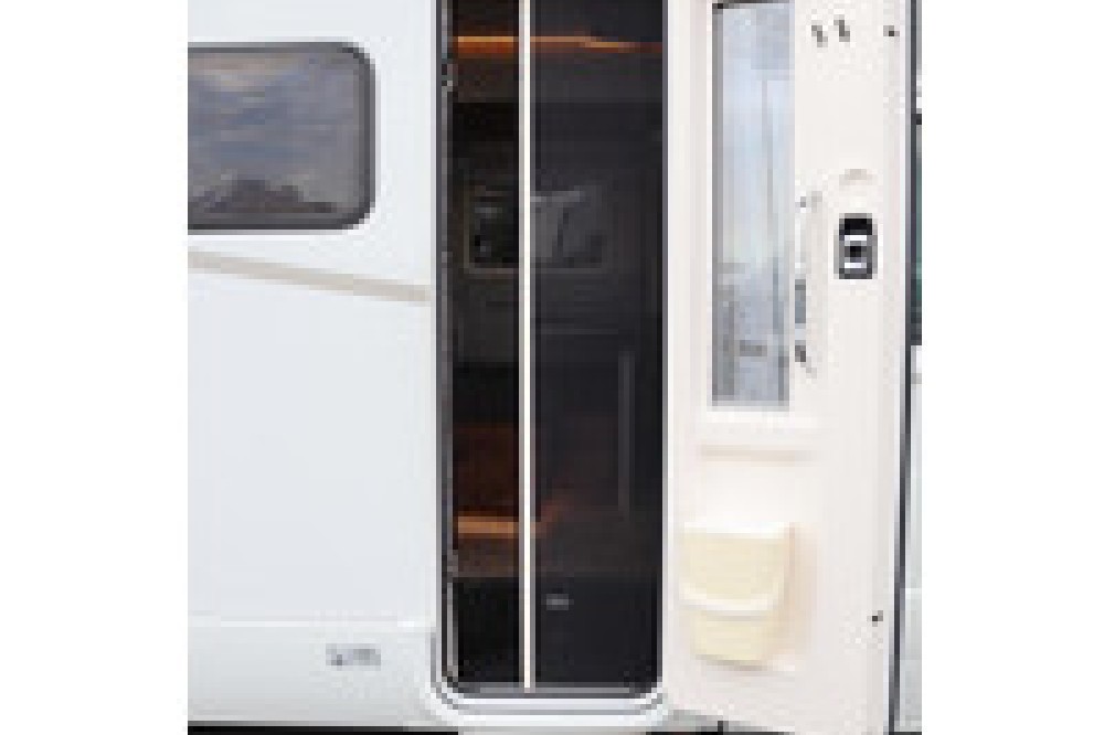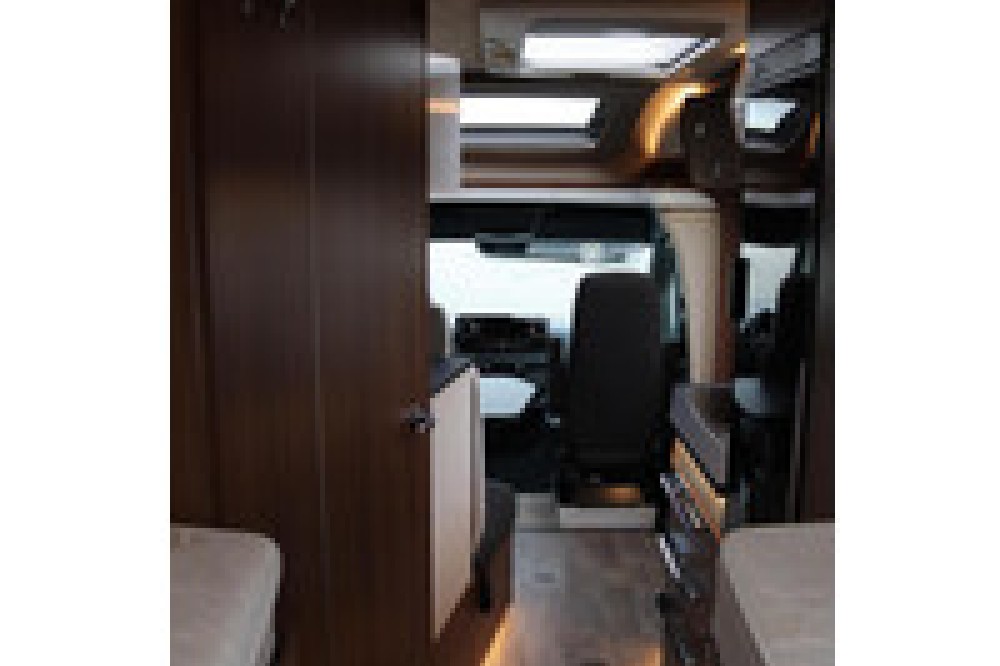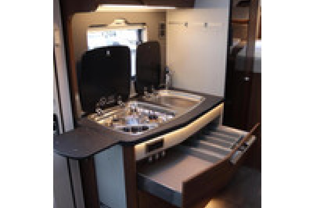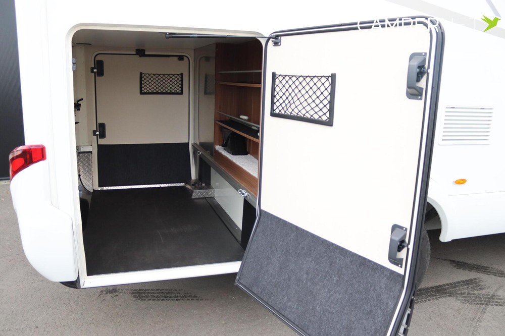 Luxe en praktische detailsDe Hymer BMC-T 580 biedt een ruime zithoek met een L-zit die ontstaat door de luxe draaibare voorstoelen. Het elegante Noce Cognac meubeldecor in combinatie met de luxe Kitami bekleding zorgt voor een verfijnde uitstraling. Dankzij de dubbele bodem, die verwarmd is en extra opbergruimte biedt, kun je jouw spullen veilig en droog opbergen. De 180 liter schoonwatertank en de 150 liter vuilwatertank zijn weggewerkt in de dubbele bodem, terwijl je vanuit de buitenkant eenvoudig toegang hebt tot de opslagruimte. De ruime garage heeft een laadhoogte van 132 cm, is aan beide zijden toegankelijk en biedt voldoende ruimte voor uw fietsen, scooter en bagage.