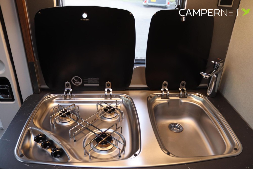 Interieur- 3-pits kookplaat met glasafdekking en RVS spoelbak