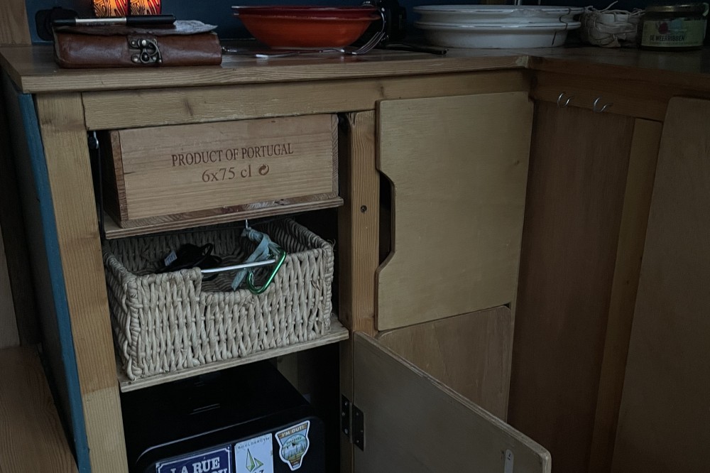 Kastruimte keuken, Schoonwatertank, Vuilwatertank,