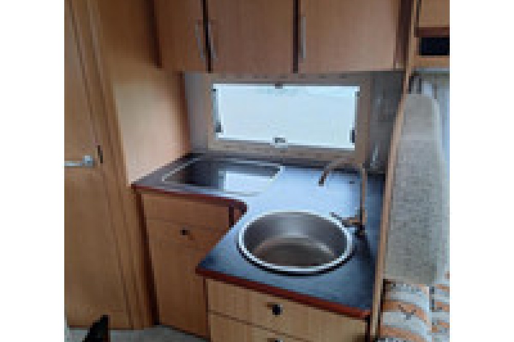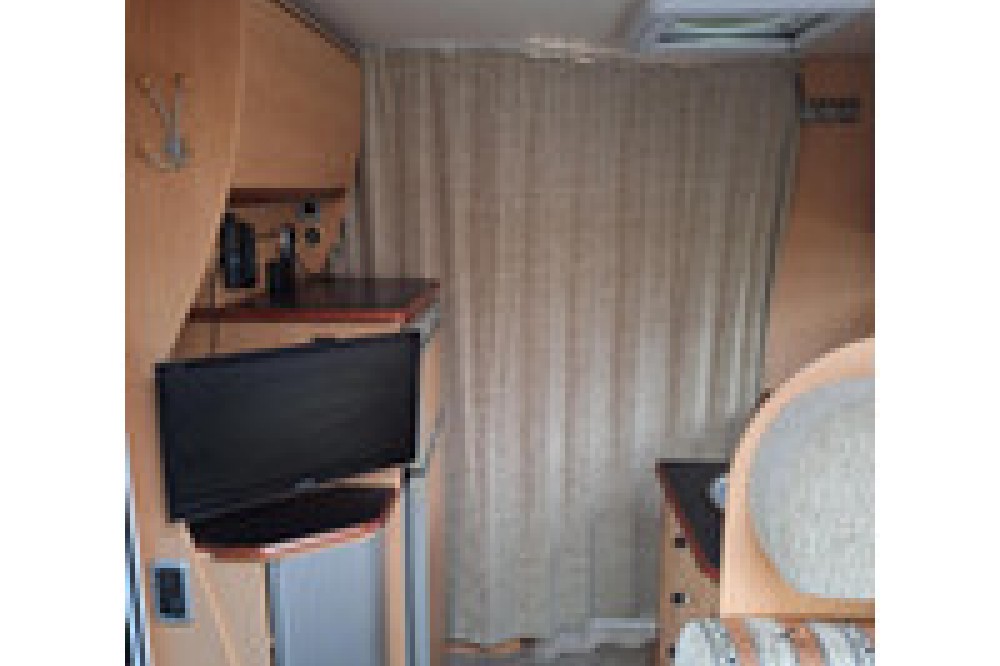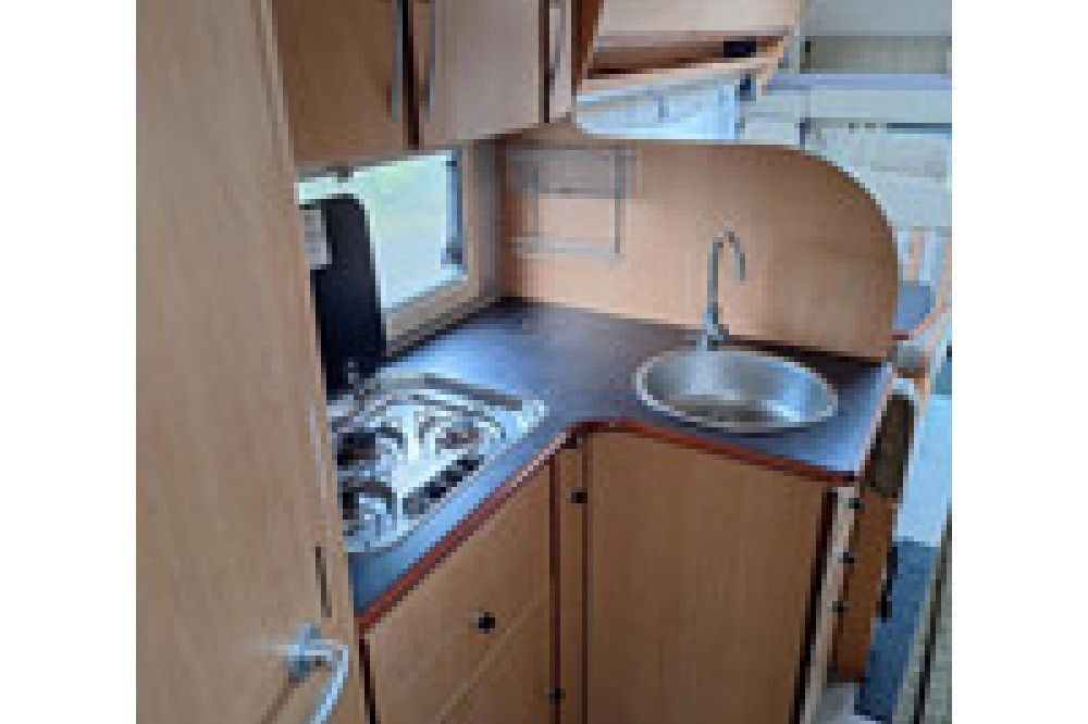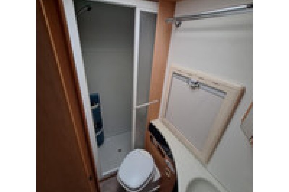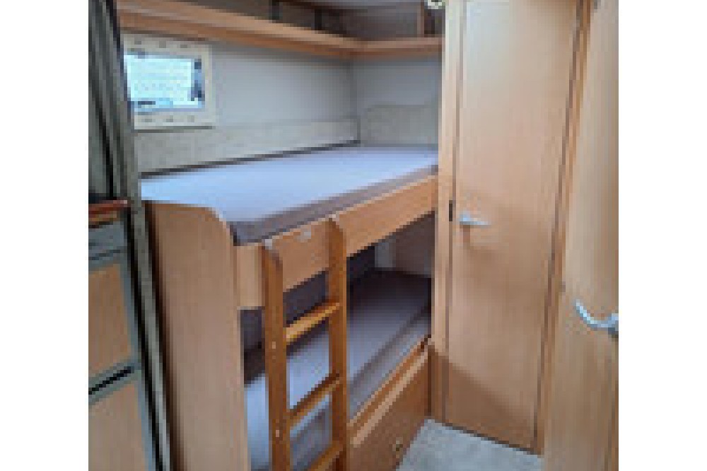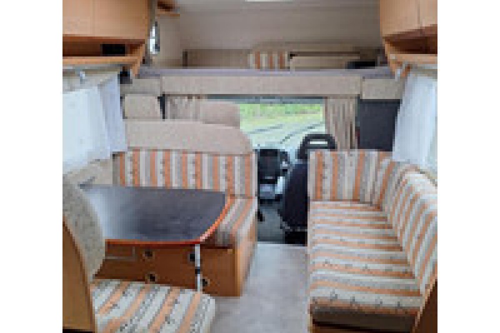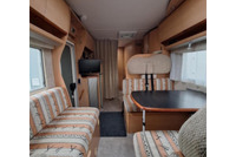 Het voertuig beschikt over twee stapelbedden (slaapgedeelte 80 x 191 cm) en een ruime alkoof (slaapgedeelte 160 x 205 cm). De zithoek kan ook worden omgebouwd tot een extra groot bed. De badkamer heeft een wc met een aparte douche.