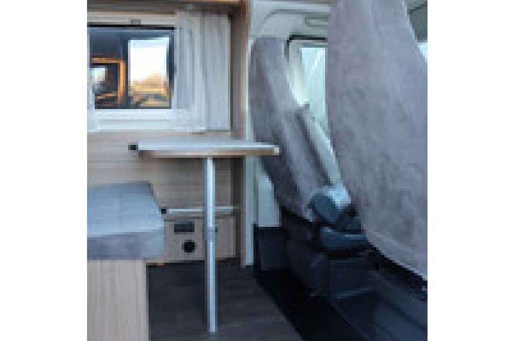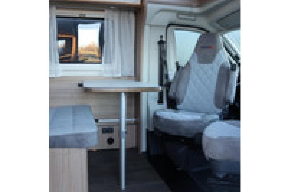 open visuele ruimte zorgt voor een aangenaam gevoel. De bestuurders- en voorpassagiersstoel kunnen gemakkelijk in het woongedeelte worden gedraaid, waardoor een gezellige