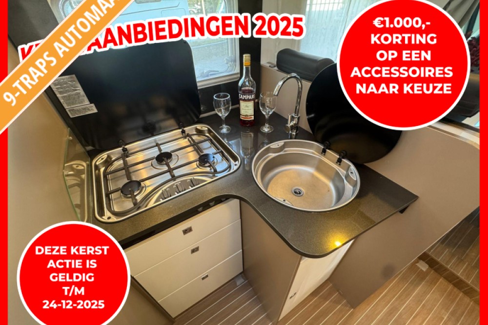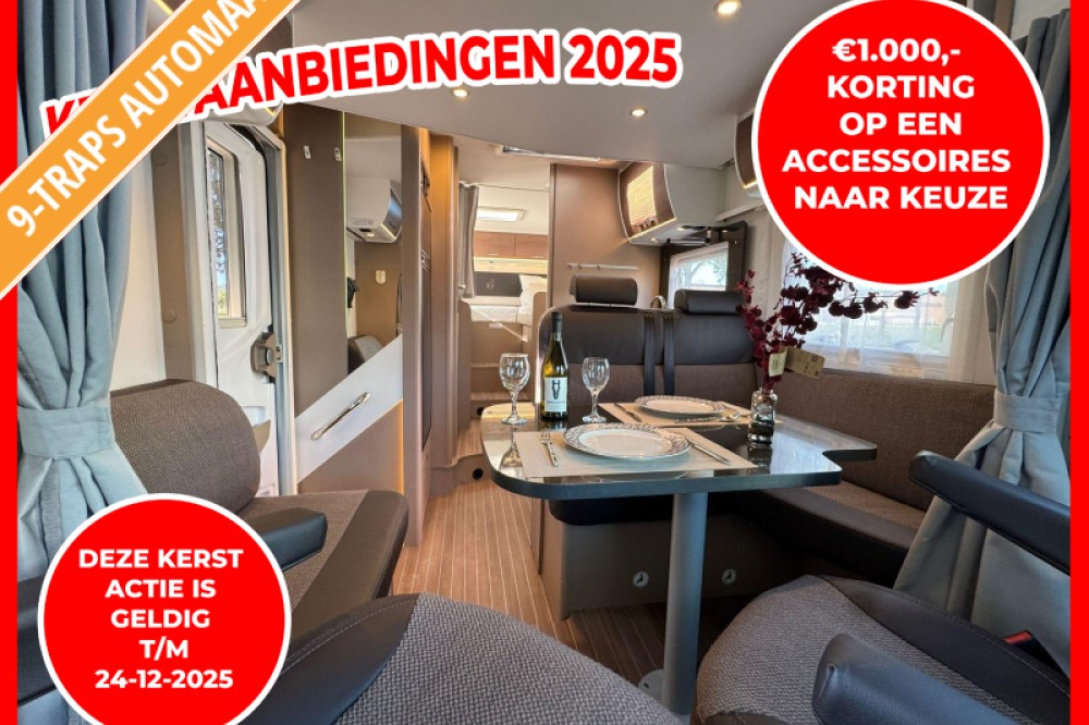 Koopt u nu een camper, dan ontvangt u €1.000 korting op een accessoire naar keuze. Denk hierbij aan een Construct-beveiligingssysteem, een zonnepaneel, een fietsendrager, een dakairco of een ander accessoire uit ons assortiment. Zo gaat u volledig uitgerust en zorgeloos het nieuwe kampeerseizoen tegemoet.