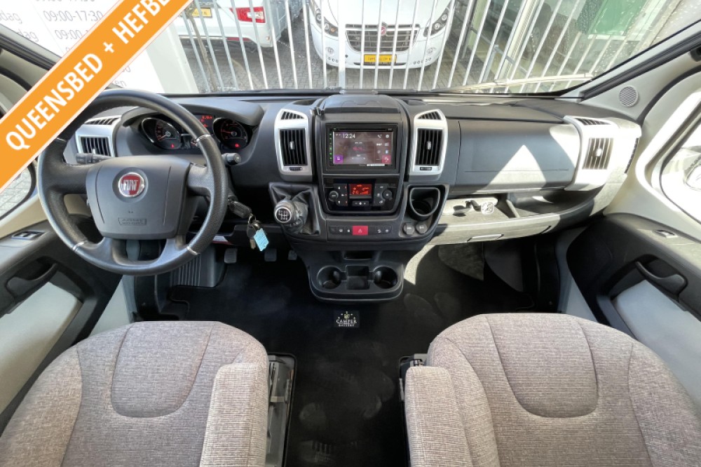 Deze unieke camper is gebouwd op de vernieuwde Fiat Ducato en is voorzien van de nog krachtigere en zuinigere Multi-Jet II Diesel Euro 6 motor met 130 pk. De vernieuwde Ducato is te herkennen aan de rode cijfers op de cabine.