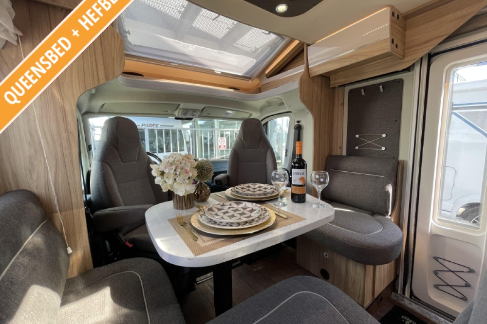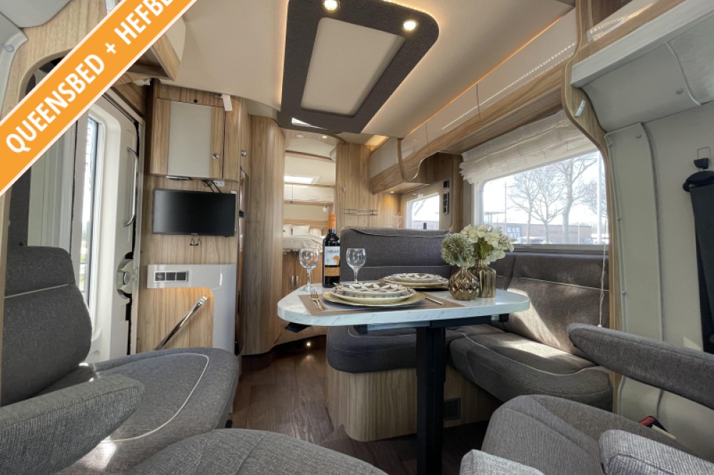 De Dinette is eenvoudig dmv een kleine aanpassing te transformeren in een extra bed (origineel af fabriek tafel met een telescopische poot waardoor u deze eenvoudig kunt laten zakken)