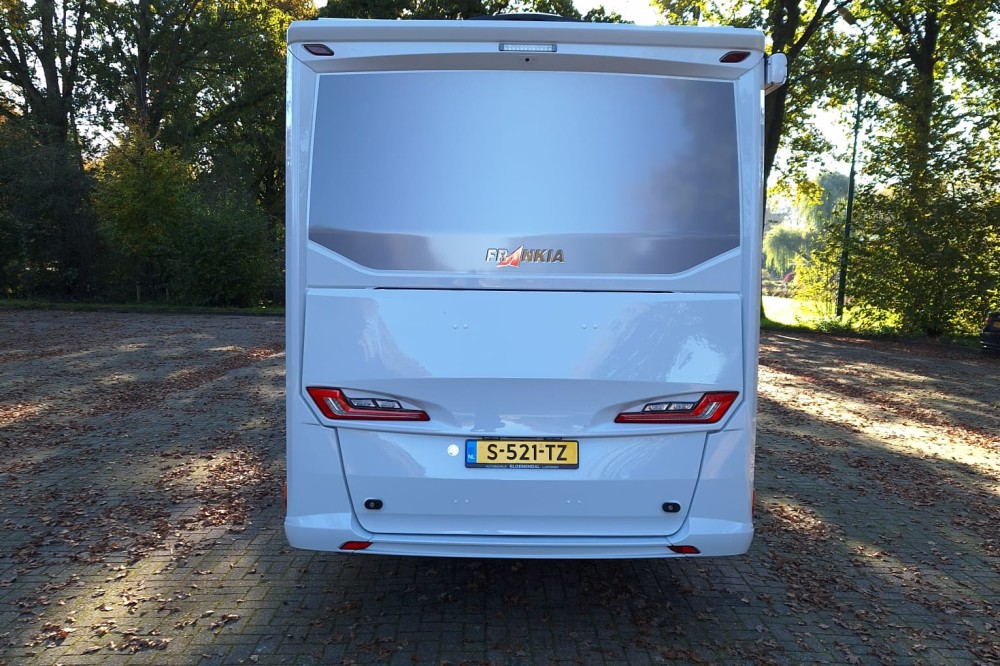 De Frankia is onder andere voorzien van een dakairco, 2 tv's, 2 zonnepanelen, 1700W omvormer, 105AH LifePo accu, trekhaak en Bearlock beveiliging.