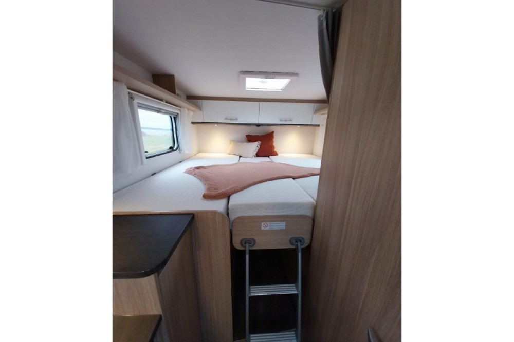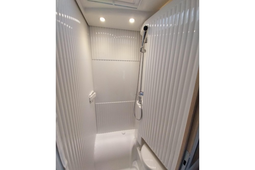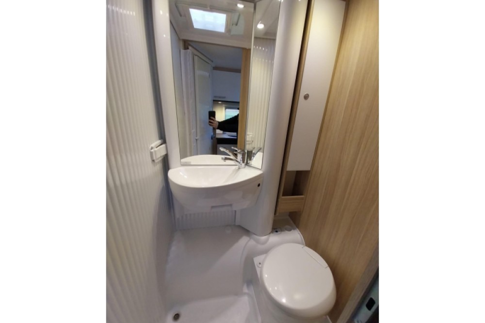 Om u van een welverdiende nachtrust te laten genieten, hebben de bedden niet alleen lattenbodems maar ook traagschuimmatrassen. In de badkamer, waar deze camper over beschikt, vindt u een ingebouwd cassettetoilet en een wastafel. Ook is de camper uitgerust met een douchegelegenheid, zodat u zich ook onderweg heerlijk kunt opfrissen.