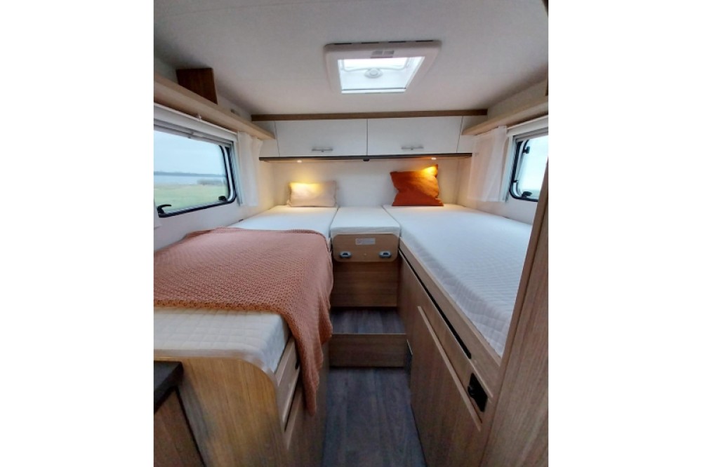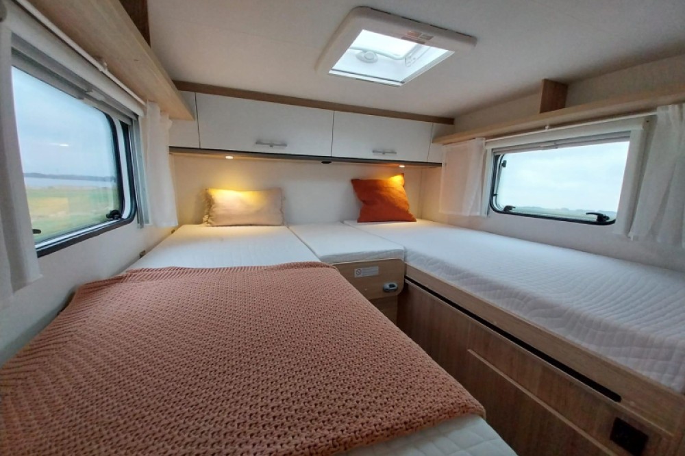 In de camper vindt u achterin de camper de ruime enkele bedden. Deze bedden hebben een lengte van 195/ 190 cm en zijn 77 / 68 cm breed.