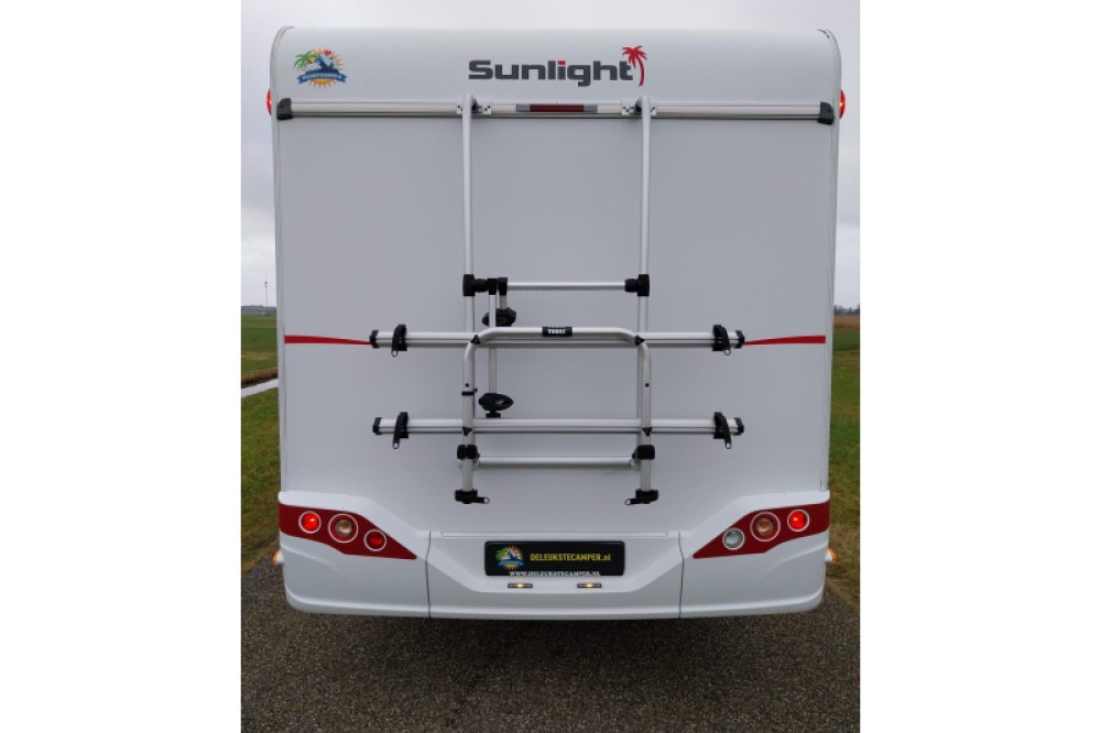 Deze praktische Sunlight V66 is gebouwd in het jaar 2021. De camper heeft een lengte van 6 meter 64, mag worden bestuurd met een B-rijbewijs en biedt een slaapplaats aan 3 personen. Door de vele ramen in de camper is er ook tijdens de donkere seizoenen voldoende daglicht in deze camper aanwezig. Het fietsenrek maakt het mogelijk om er tussentijds op uw vakantie ook makkelijk met de fiets op uit te trekken. Het handige serviceluik biedt u ook van buitenaf toegang tot uw bagage.