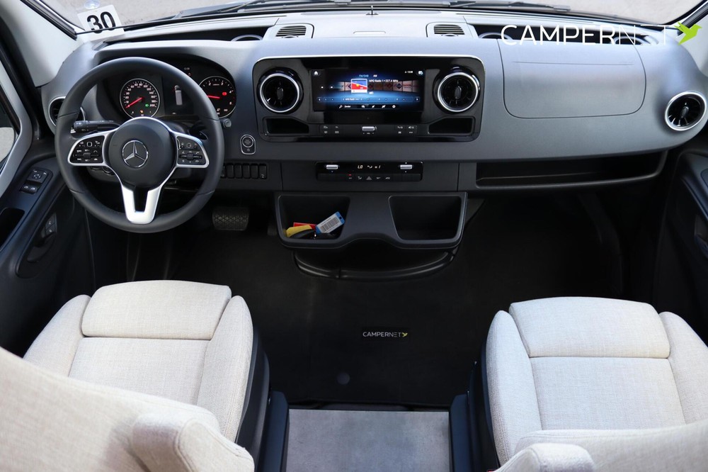 Geniet van ongeëvenaard rijcomfort op basis van de 170 pk sterke Mercedes-Benz sprinter, uitgerust met de 9G-tronic automatische transmissie en een 10,25 inch MBUX multimediasysteem, inclusief navigatie, achteruitrijcamera en uitgebreide assistentiesystemen. - Onafhankelijk XXL